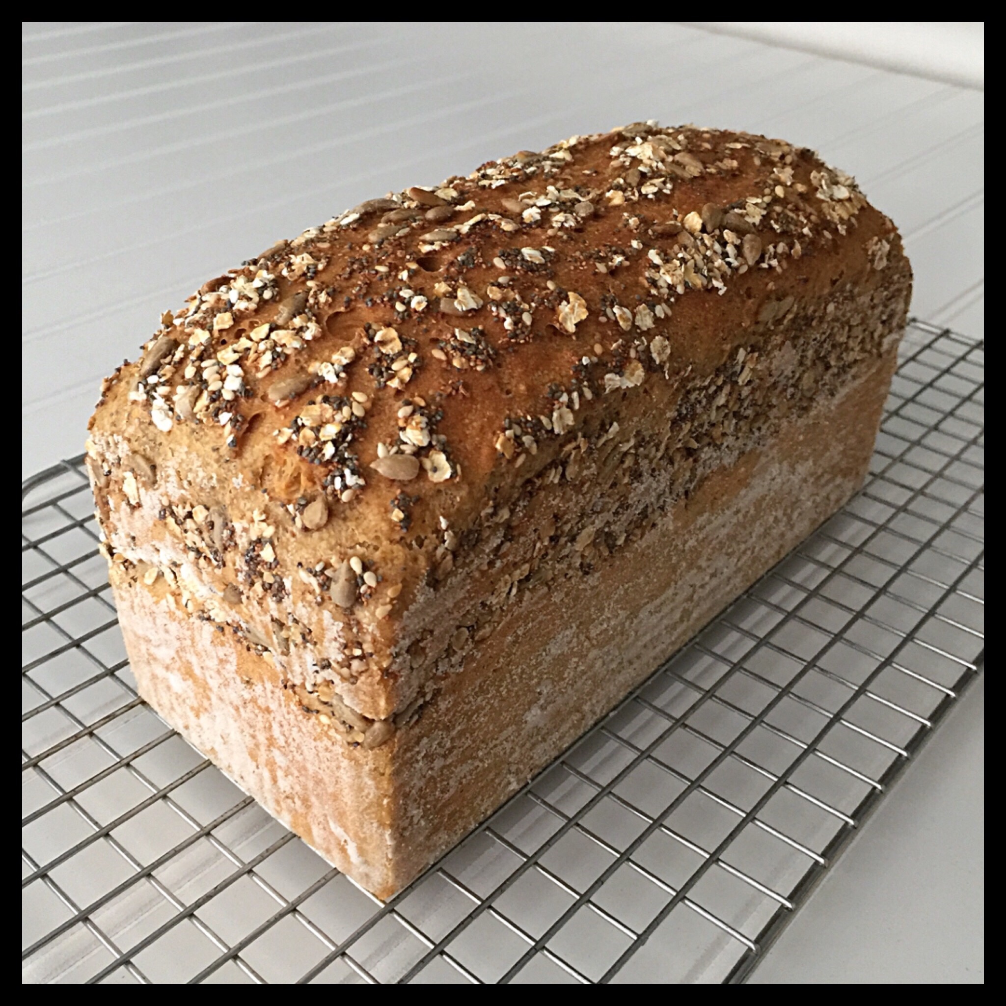 Because this flour makes such amazing bread, I had to show you another loaf! This multi-grain seeded bread has added molasses, oats, teff, and poppy, sesame, and sunflower seeds!