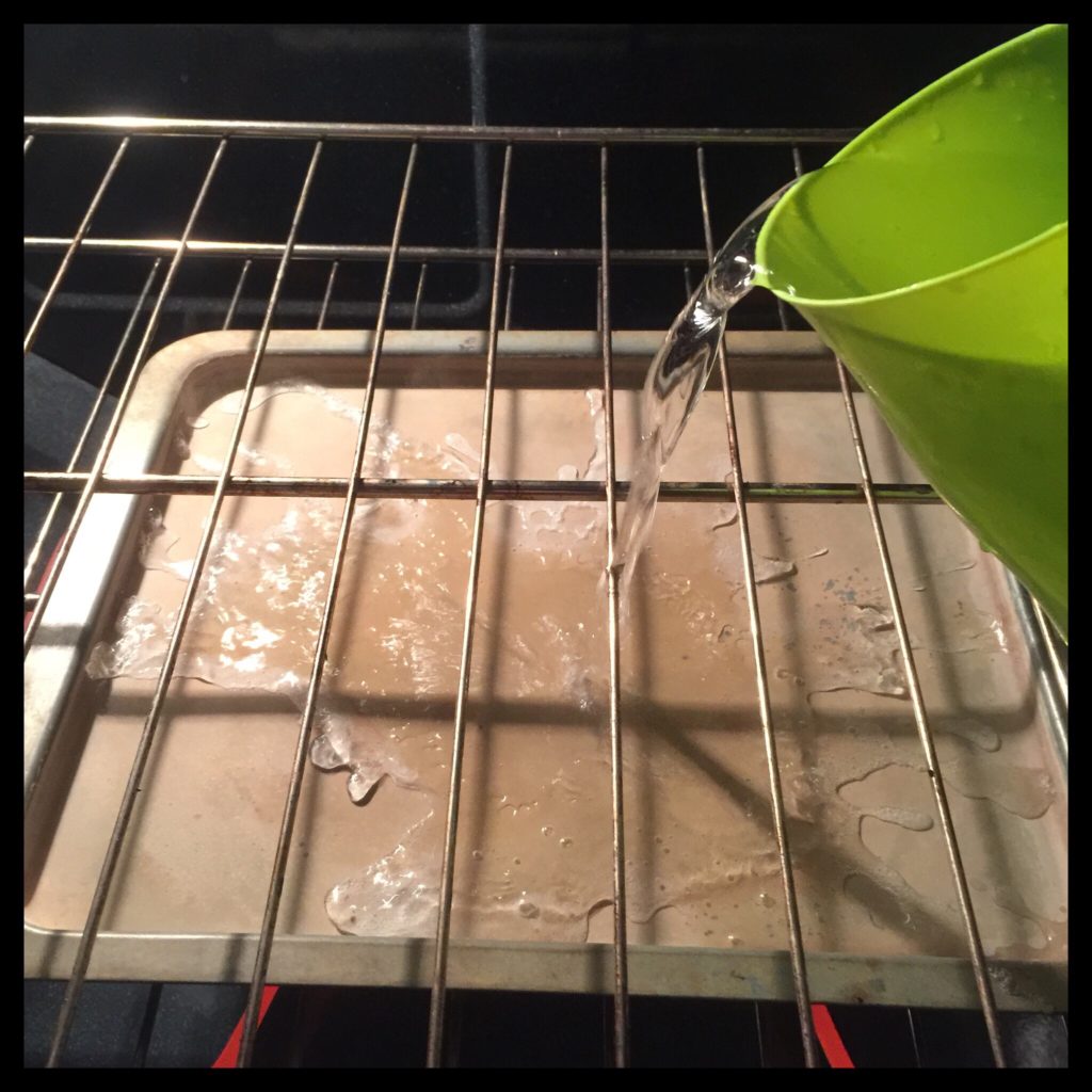 Let the dough rise until it is nearly doubled in size, but not cracked on the top. Your dough will only need to rise for 15 to 20 minutes if your room is 85 degrees Fahrenheit, but will need 30 to 45 minutes if your room is 70 degrees Fahrenheit, and somewhere in between if your room temperature is in the middle. Preheat your oven to 400 degrees Fahrenheit while it is rising. (You will not be able to use it as a place for rising your dough this time.) Place the shallow pan on a lower rack and add about a 1/4″ layer of water. Keep an eye on the water level if your rising time is over 30 minutes as you may need to add more. Before your loaf is fully risen, be sure there is still at least a 1/8″ layer of water in the shallow pan. If you have to add more, you will need to allow it to get hot and produce steam before baking your bread.