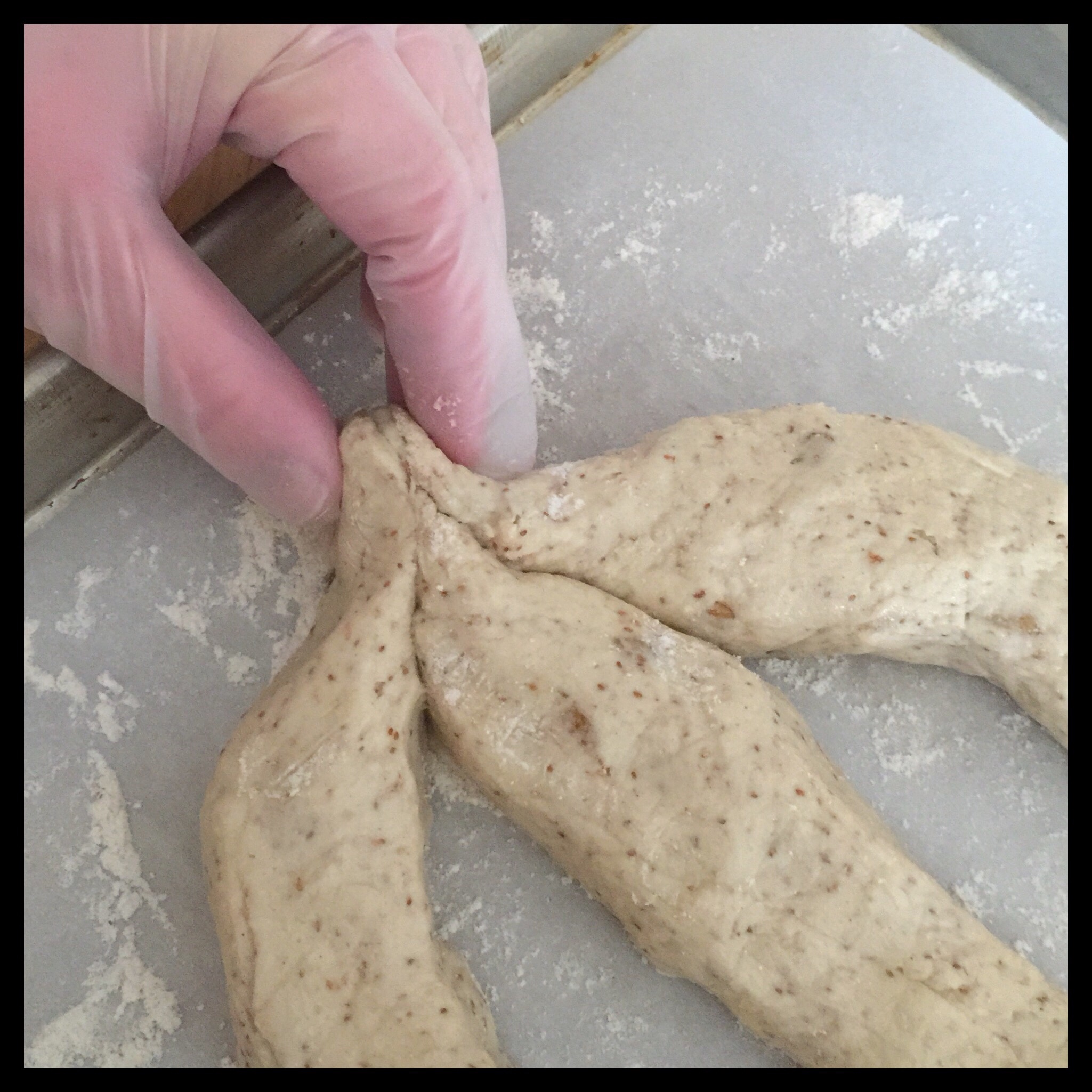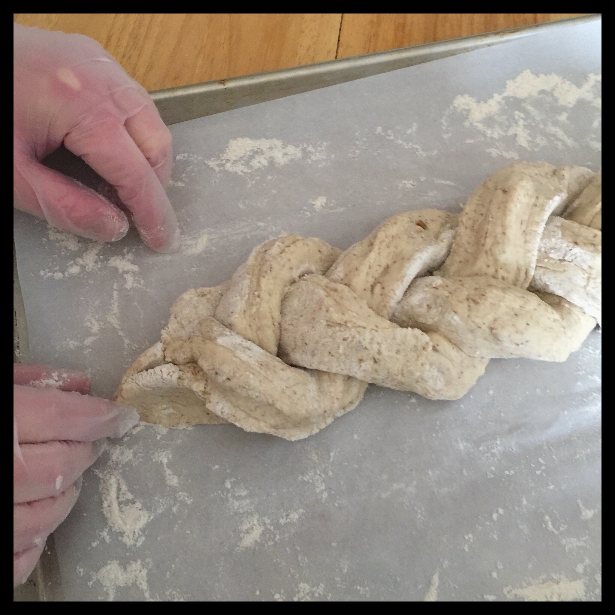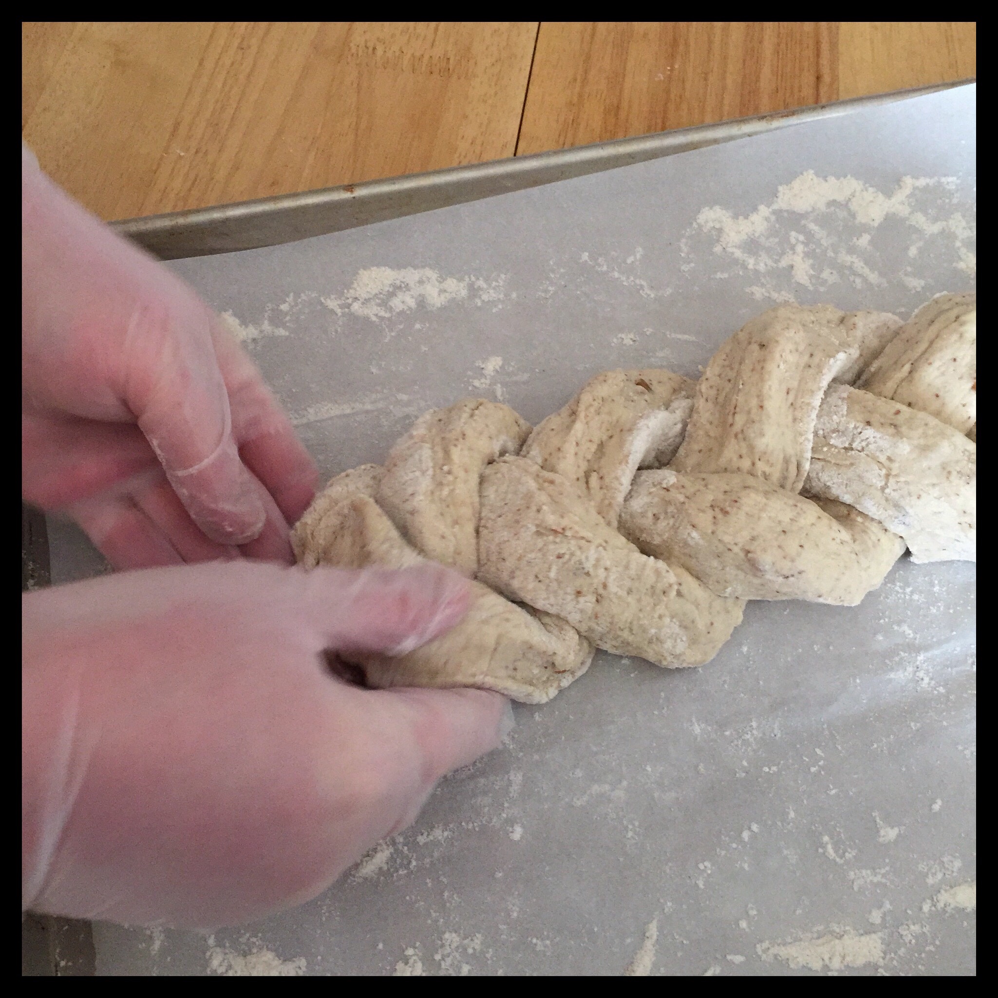 Make the braid fairly tight, but do not squish the dough ropes together.