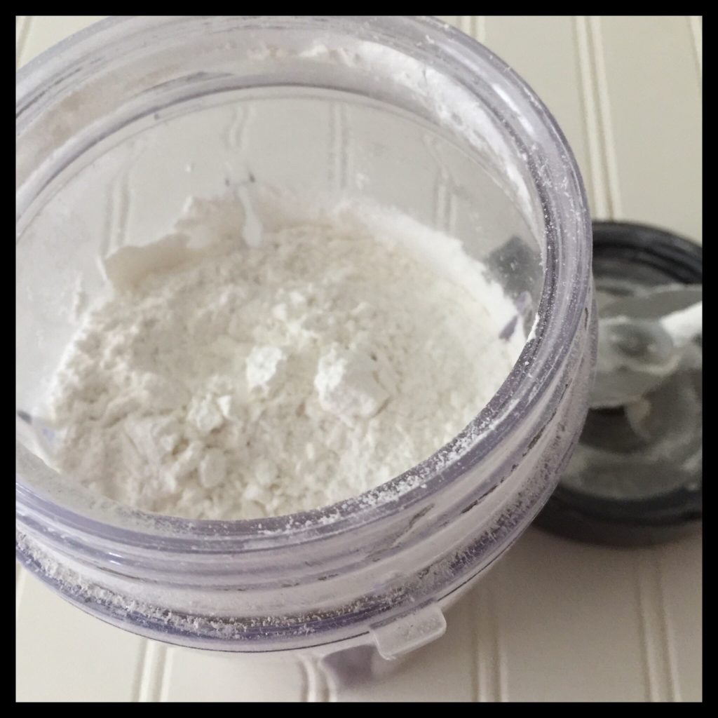 Add the blender blades and screw the lid on tightly. Blend for several minutes, stopping every 30 to 45 seconds to remove the jar and shake it a few times to redistribute the sugar. Carefully remove the lid to avoid spilling and see how beautiful your powdered sugar looks!