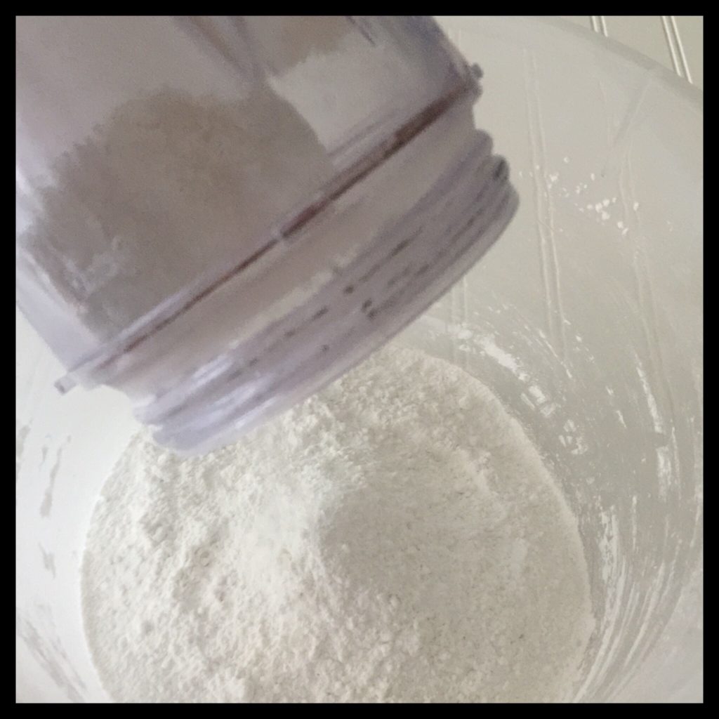 It is so easy to make powdered sugar! If you have a smoothie jar for your blender, follow these directions. If you don’t, scroll down for the full-size blender directions. Add 375 g (1 7/8 c) of vegan sugar and 8.0 g (1 TBS) of your choice of starch to the smoothie jar: