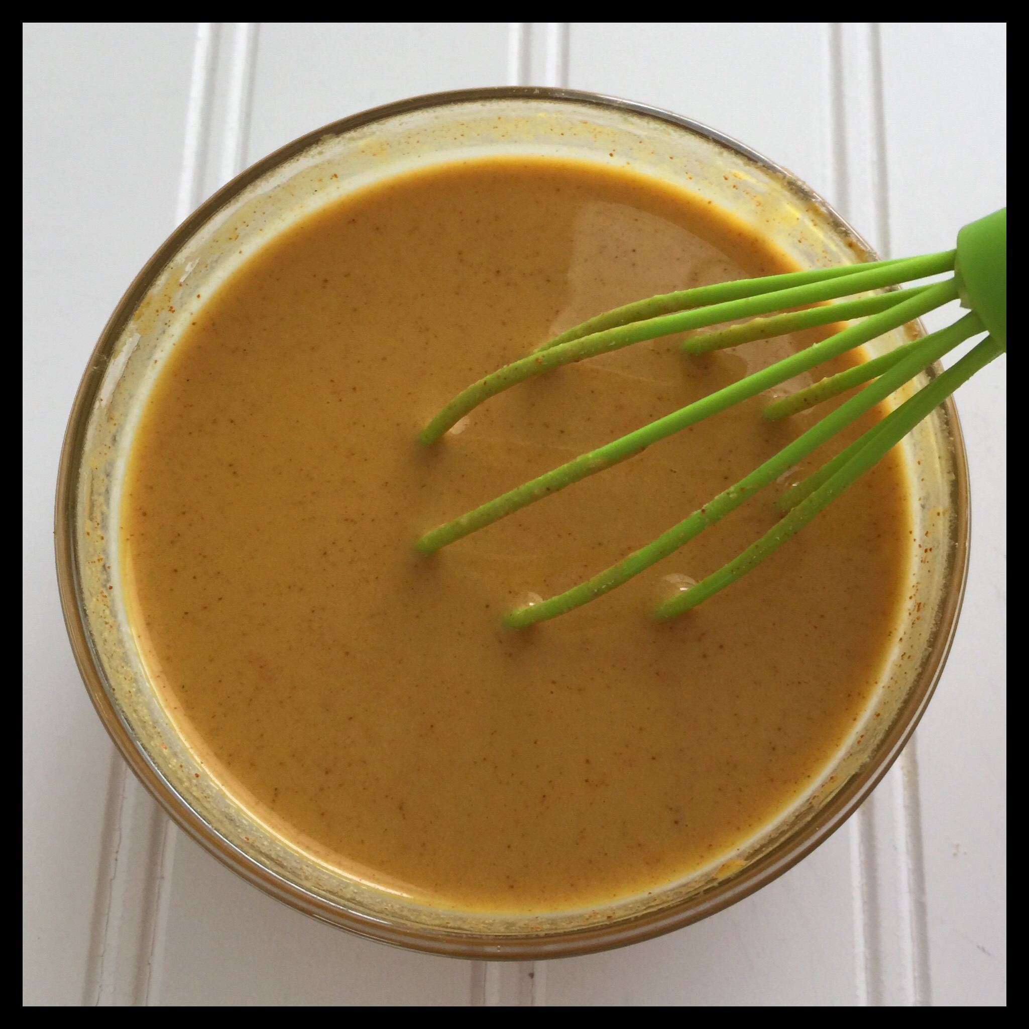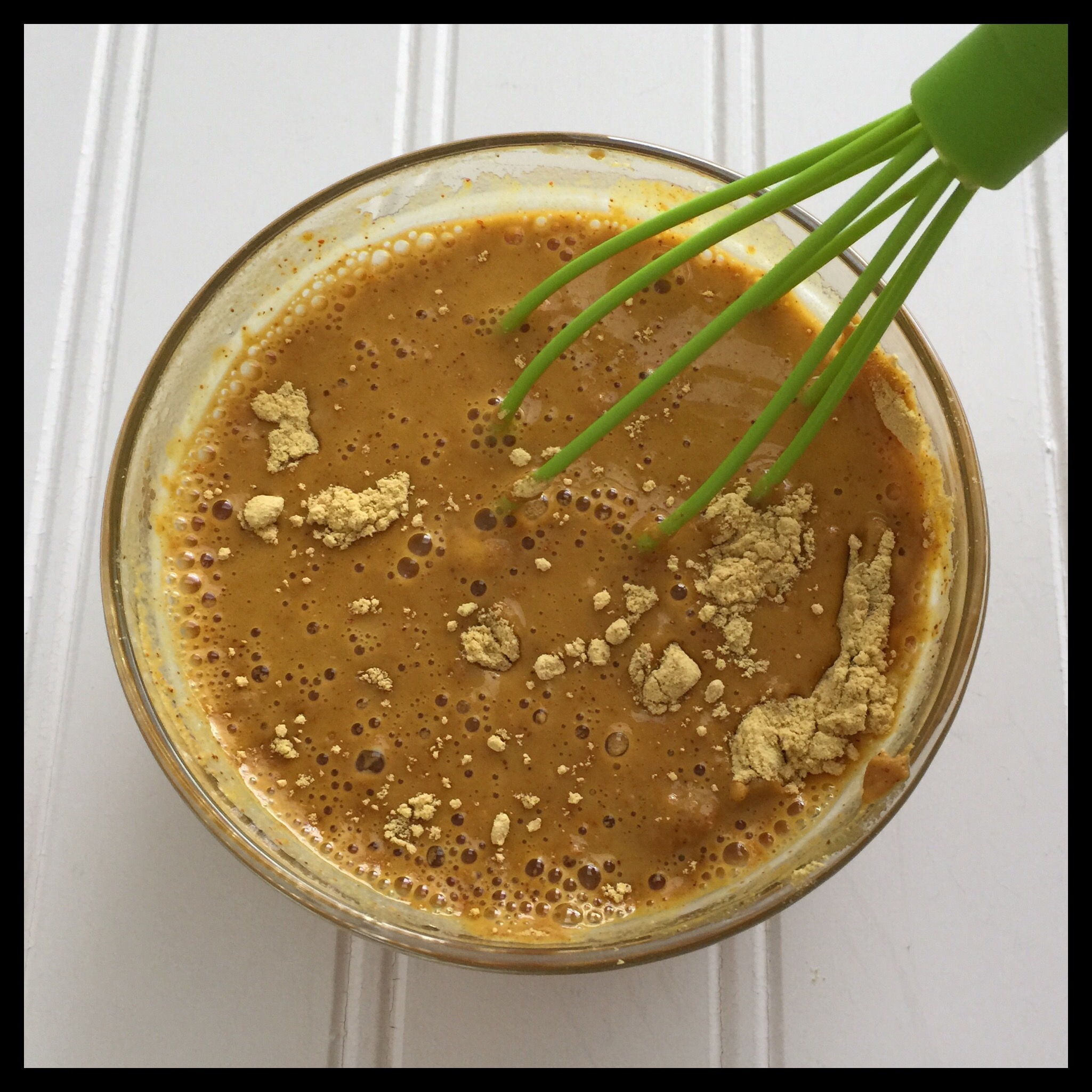 Add the mustard and the miso, and whisk again: