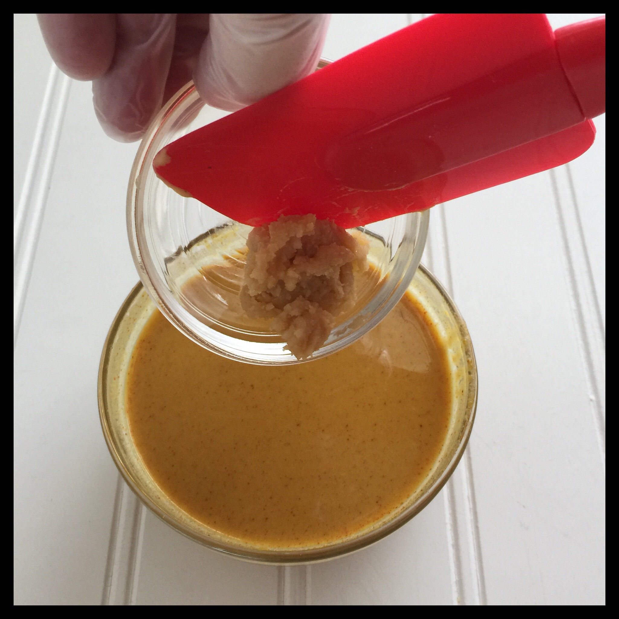 1. Add the So Cheezy vegan cheese seasoning to the water and whisk it together. Add the mustard and the miso, and whisk again.