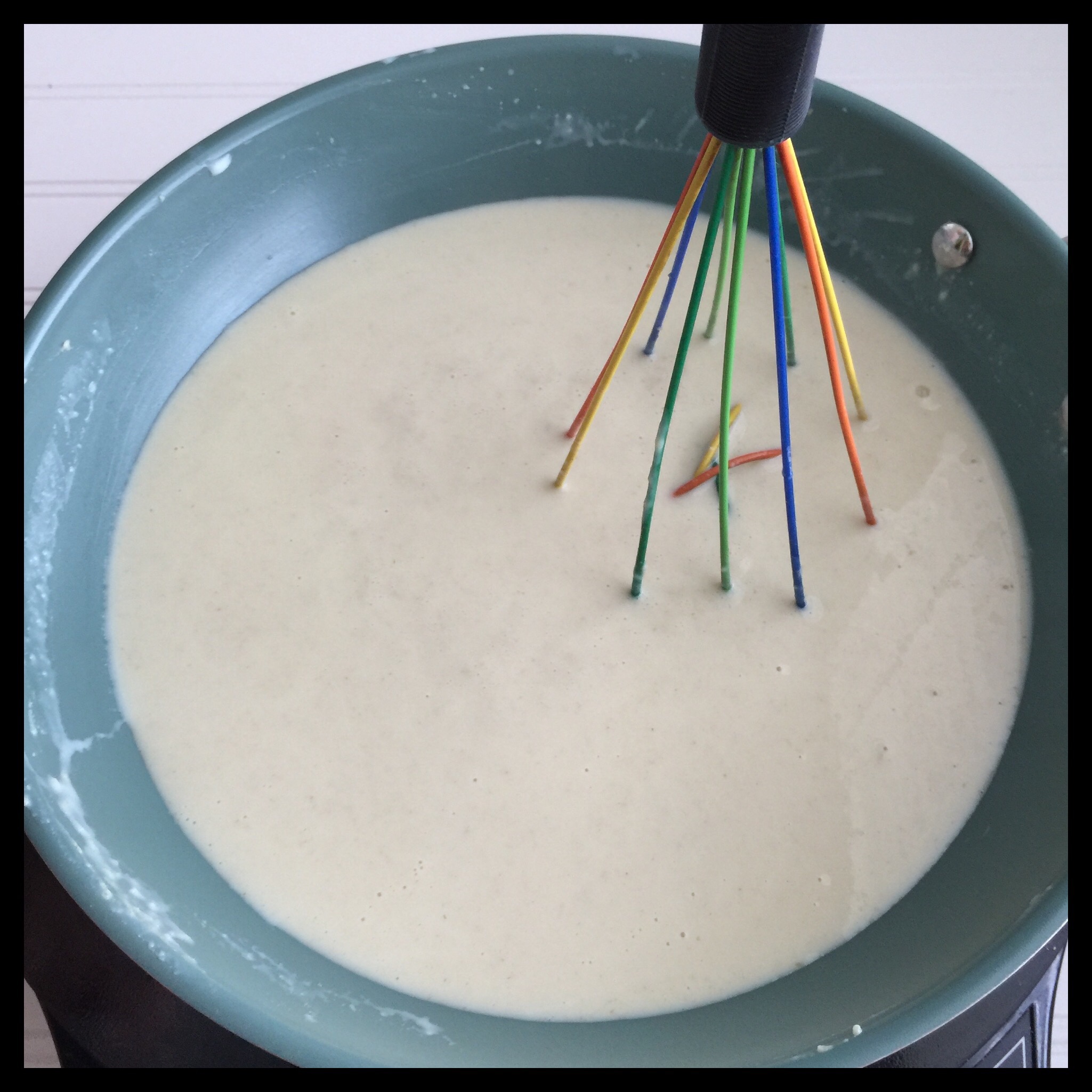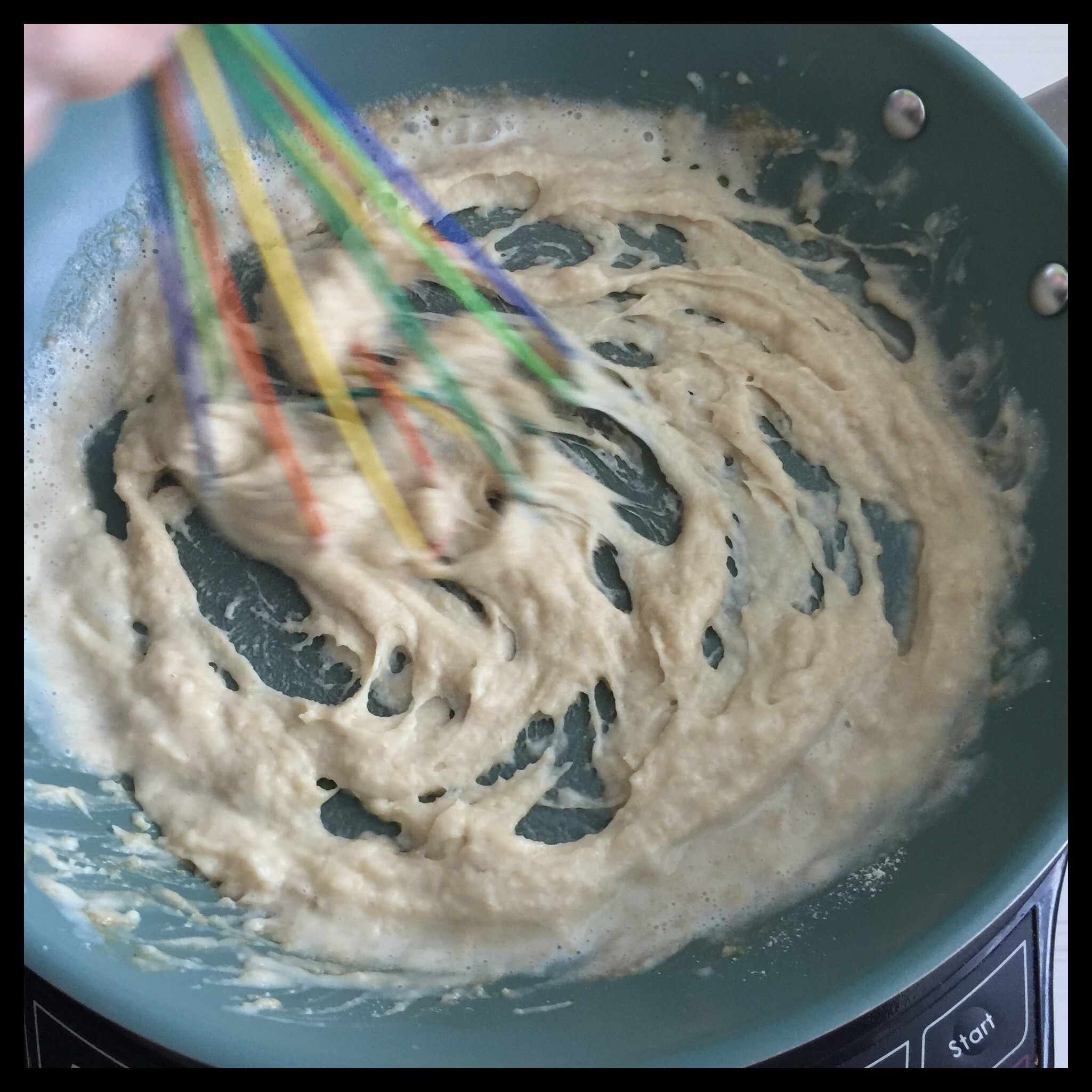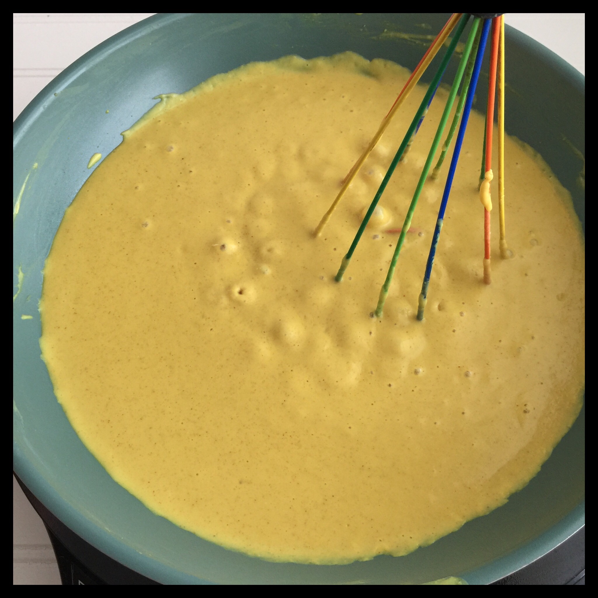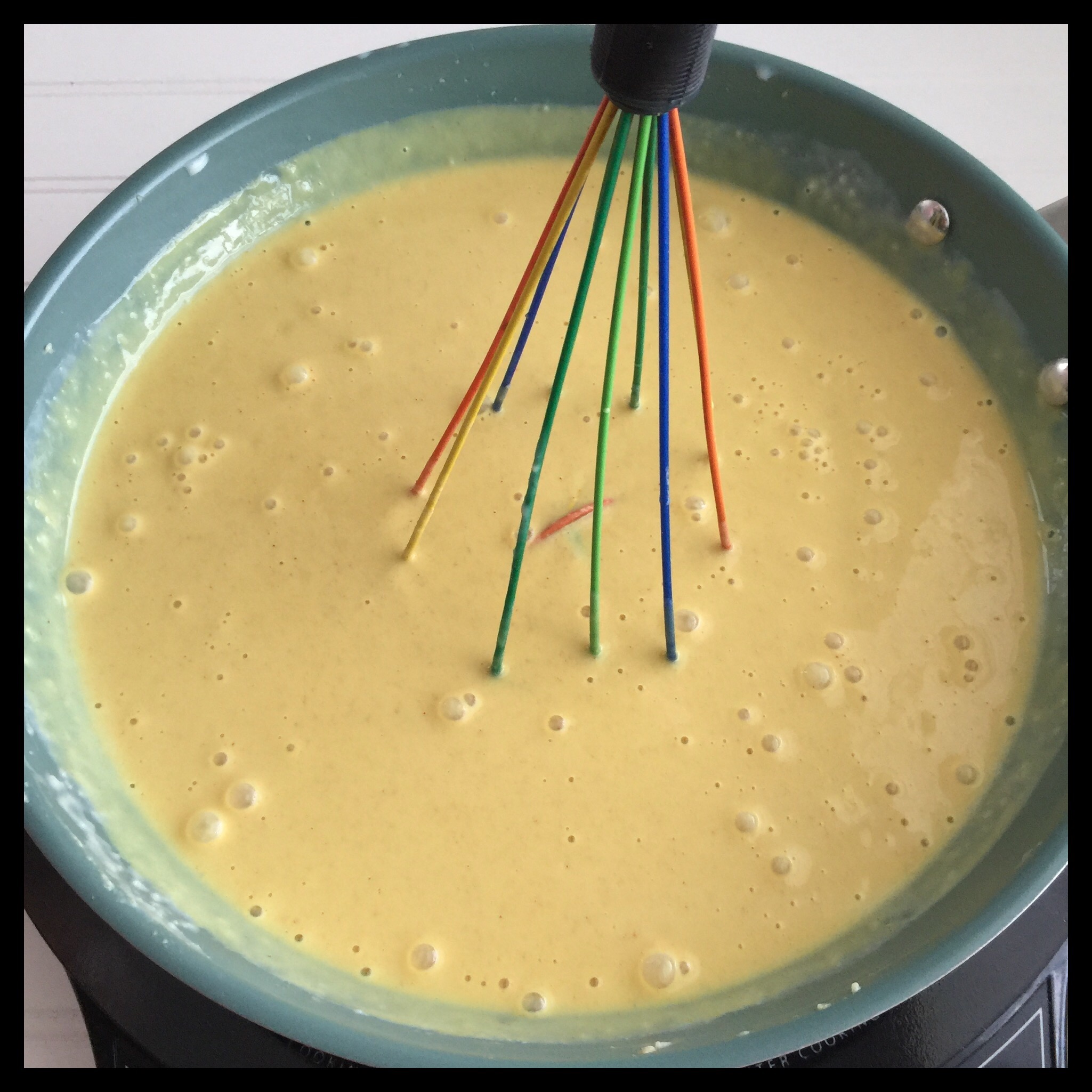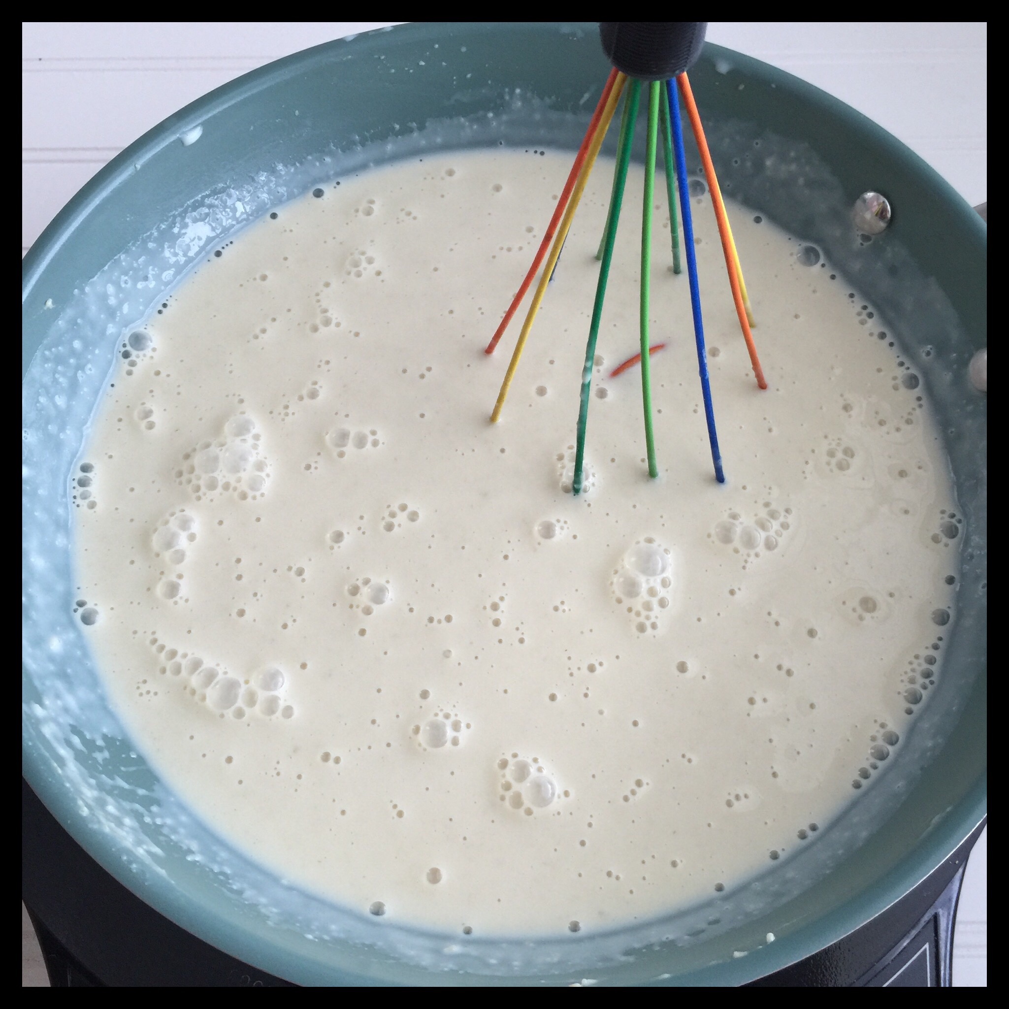 Continue whisking and cooking for several minutes until the sauce is nicely thickened: