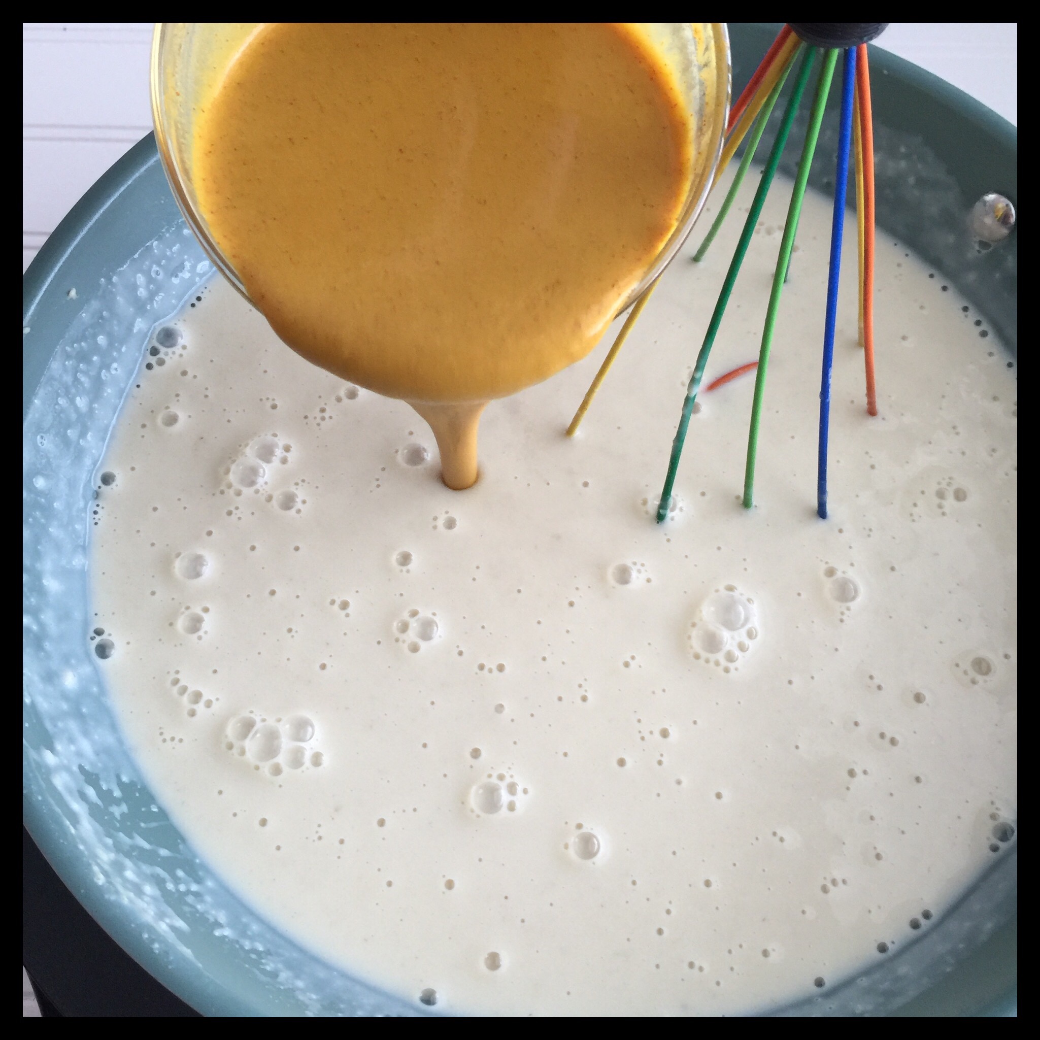 4. Next, add the cheeze blend, and whisk it in thoroughly.