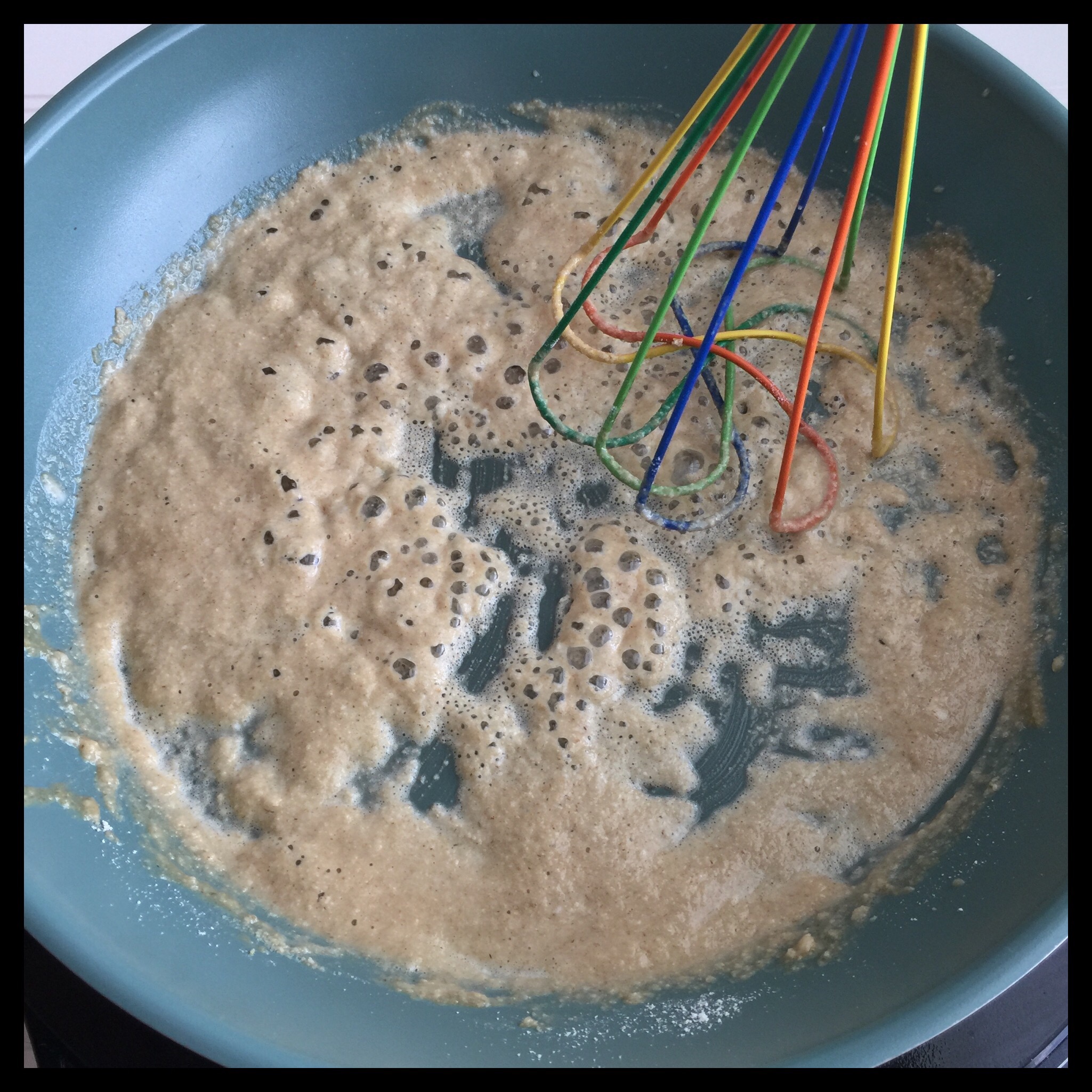 Continue whisking and cooking for several minutes until the sauce is nicely thickened: