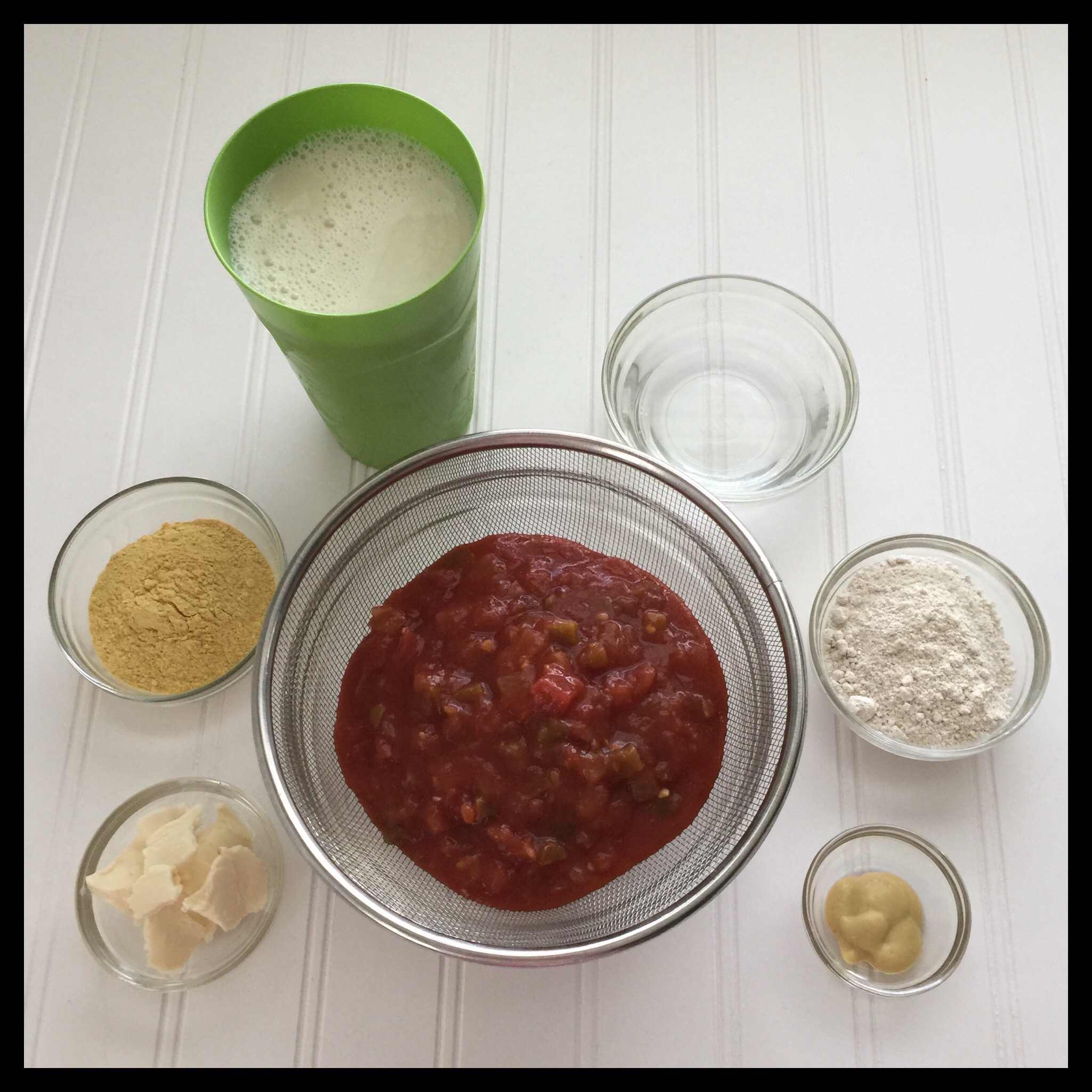 This lovely queso is just my Magical Cheeze Sauce recipe with salsa mixed in at the end! The salsa transforms the plain cheeze sauce into a spicy, delicious queso that is lovely with chips, on nachos, tacos, baked potato, fries, and more! Here are the ingredients you will need to make this wonderful queso: