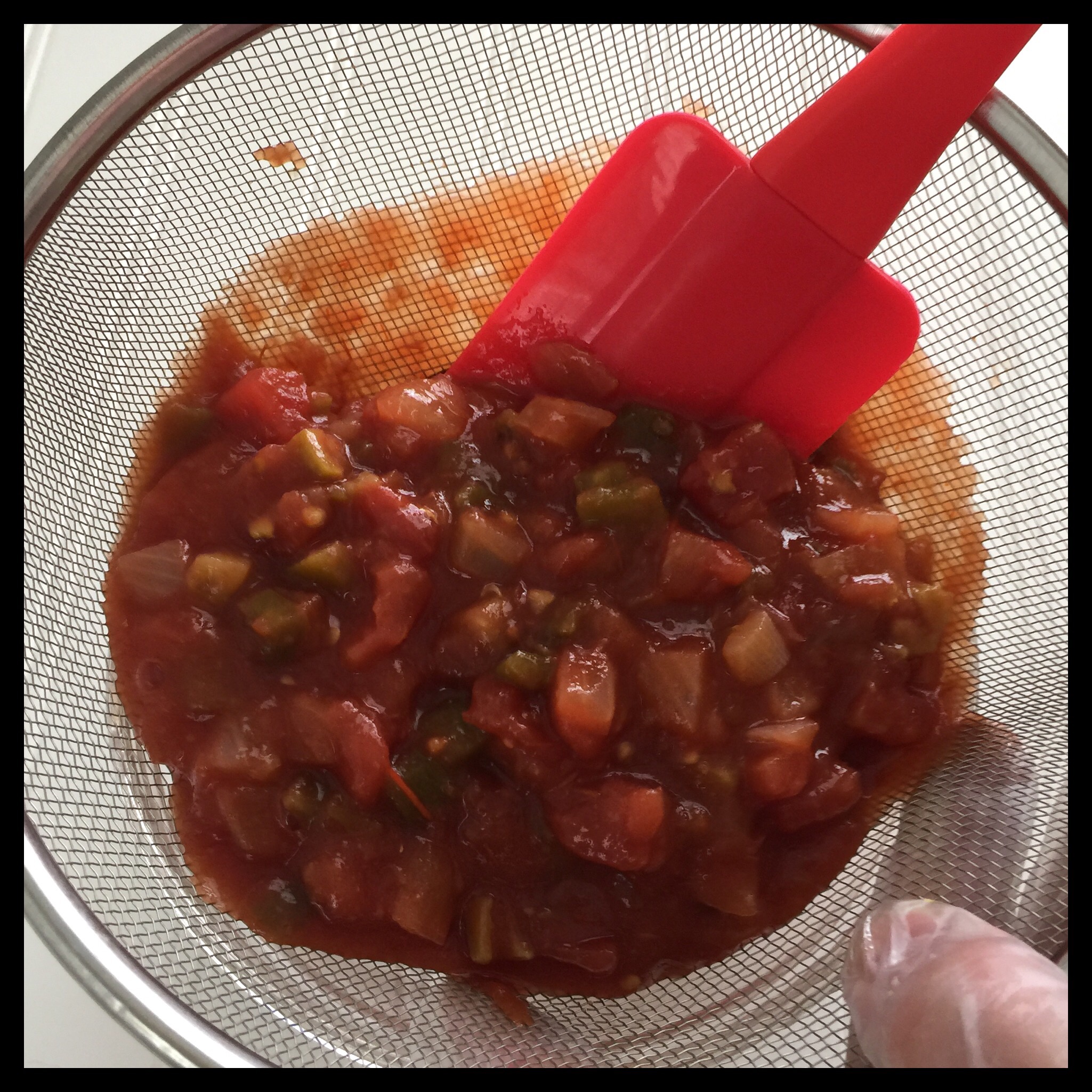 1. Place a strainer into a bowl, then pour the salsa into the strainer. You want all the liquid to drain away before you add the salsa to the cheeze sauce.