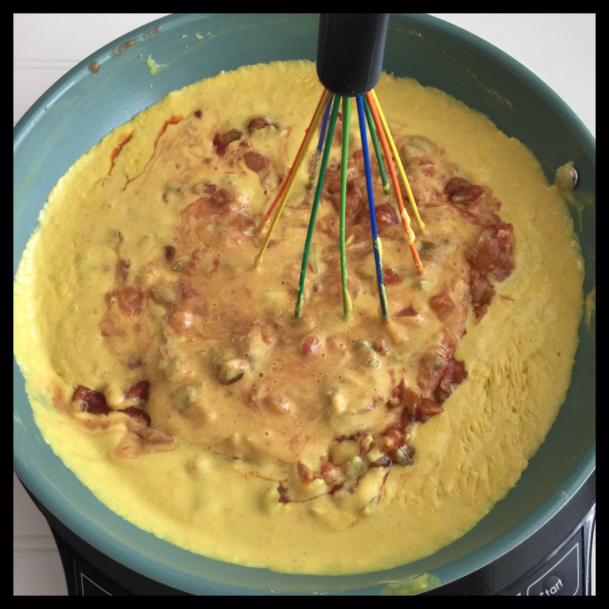 5. Next, add the cheeze blend, and whisk it in thoroughly.