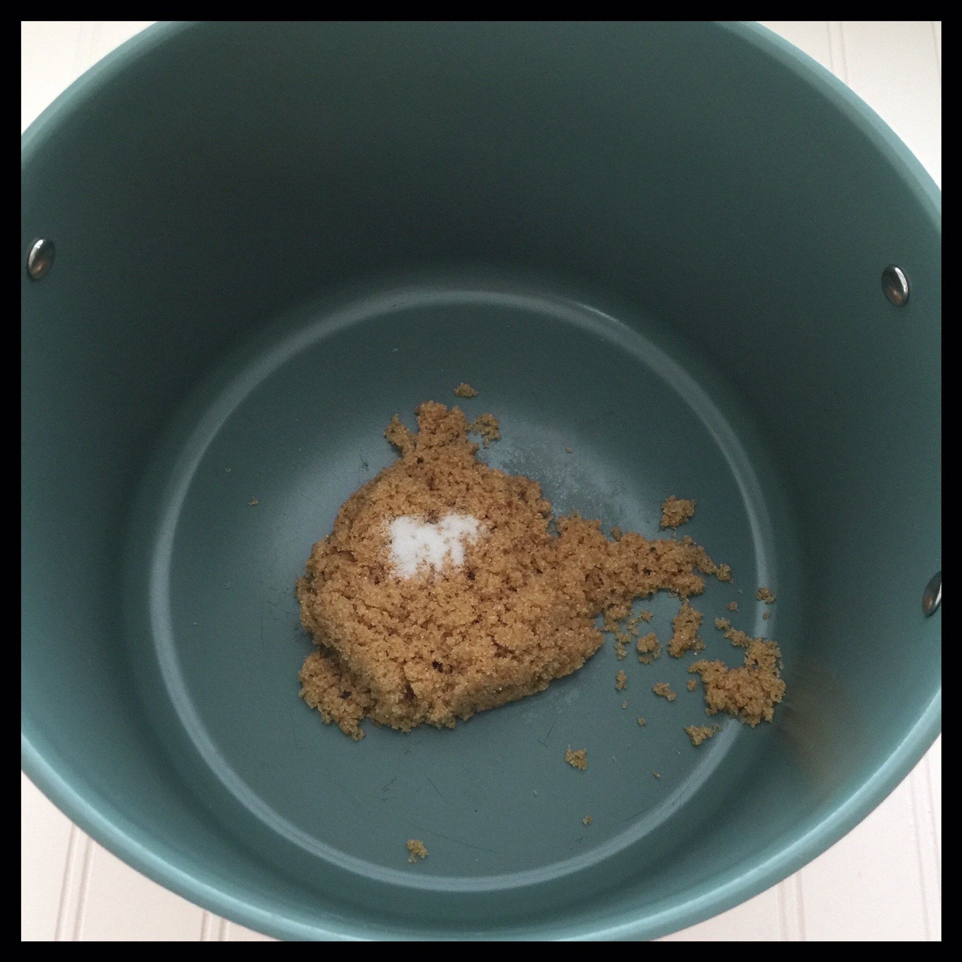 Add the vegan light brown sugar and the salt to a large soup pot: