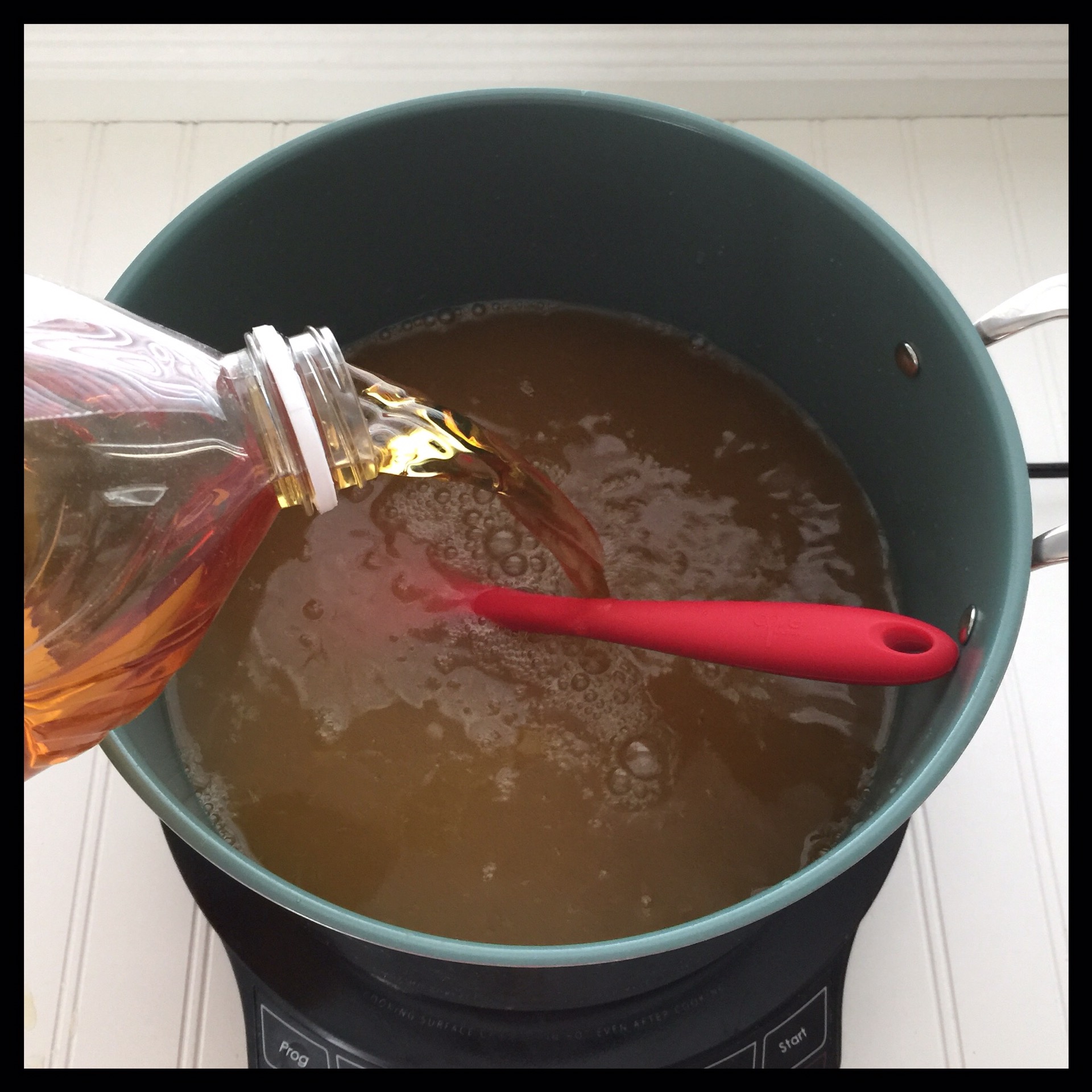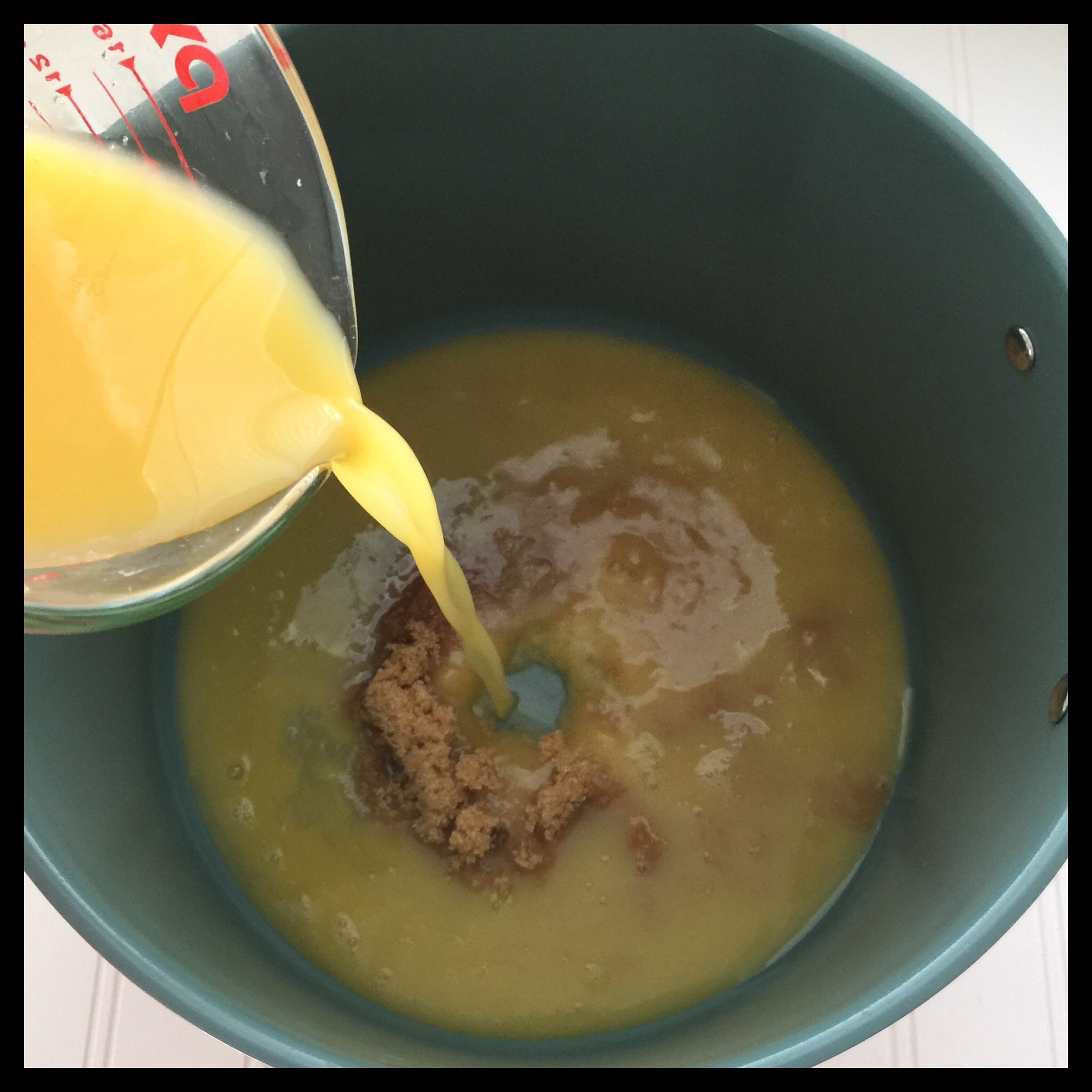 Add the vegan light brown sugar, salt, lemon juice, and orange juice to a large soup pot. Mix to combine.