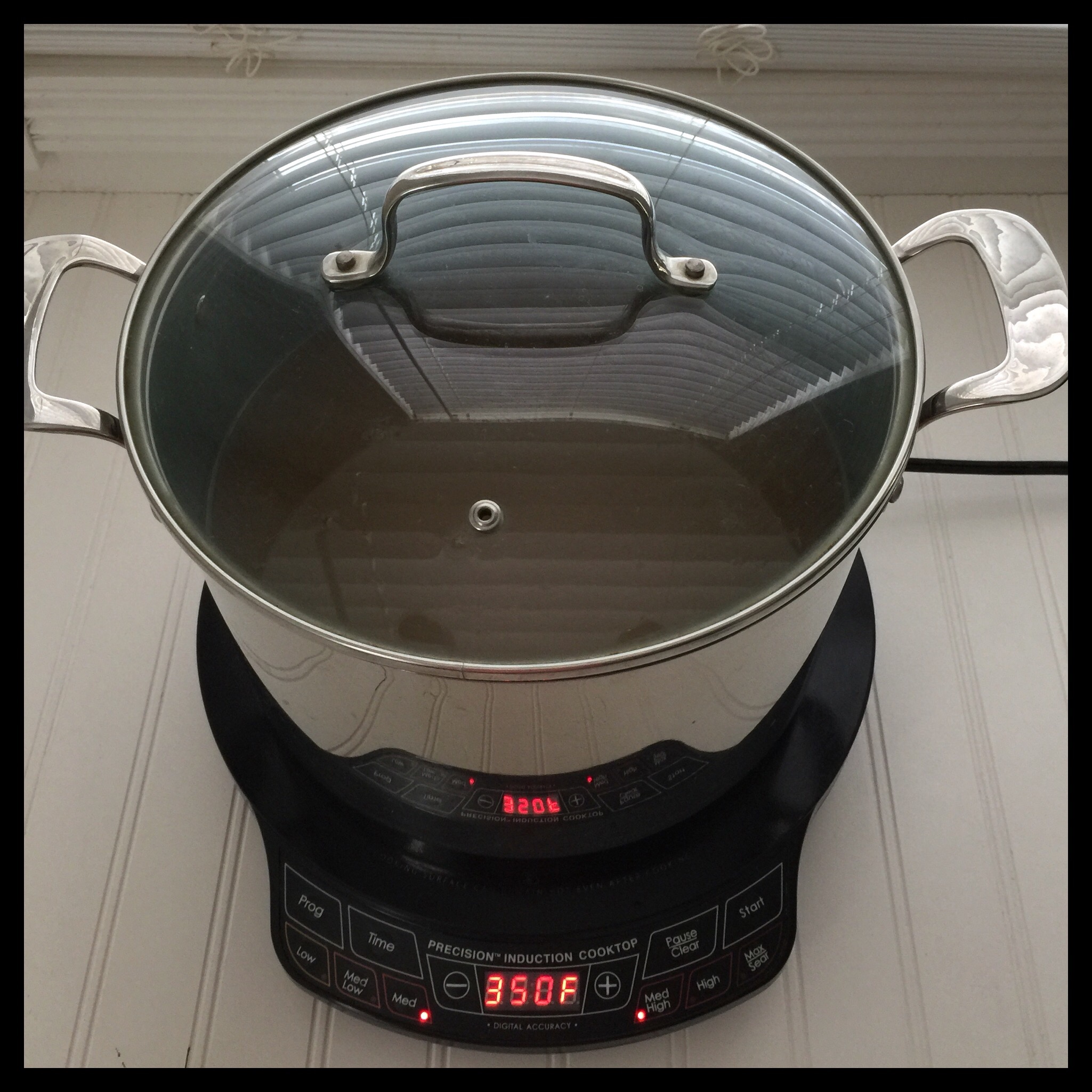 Place the pot on your burner or induction cooktop. Heat and stir the mixture until the sugar has fully dissolved. Doing this now means you will not have to stir the cider as often in the next step. (Sugar sitting on the bottom of your pot is very likely to burn.)