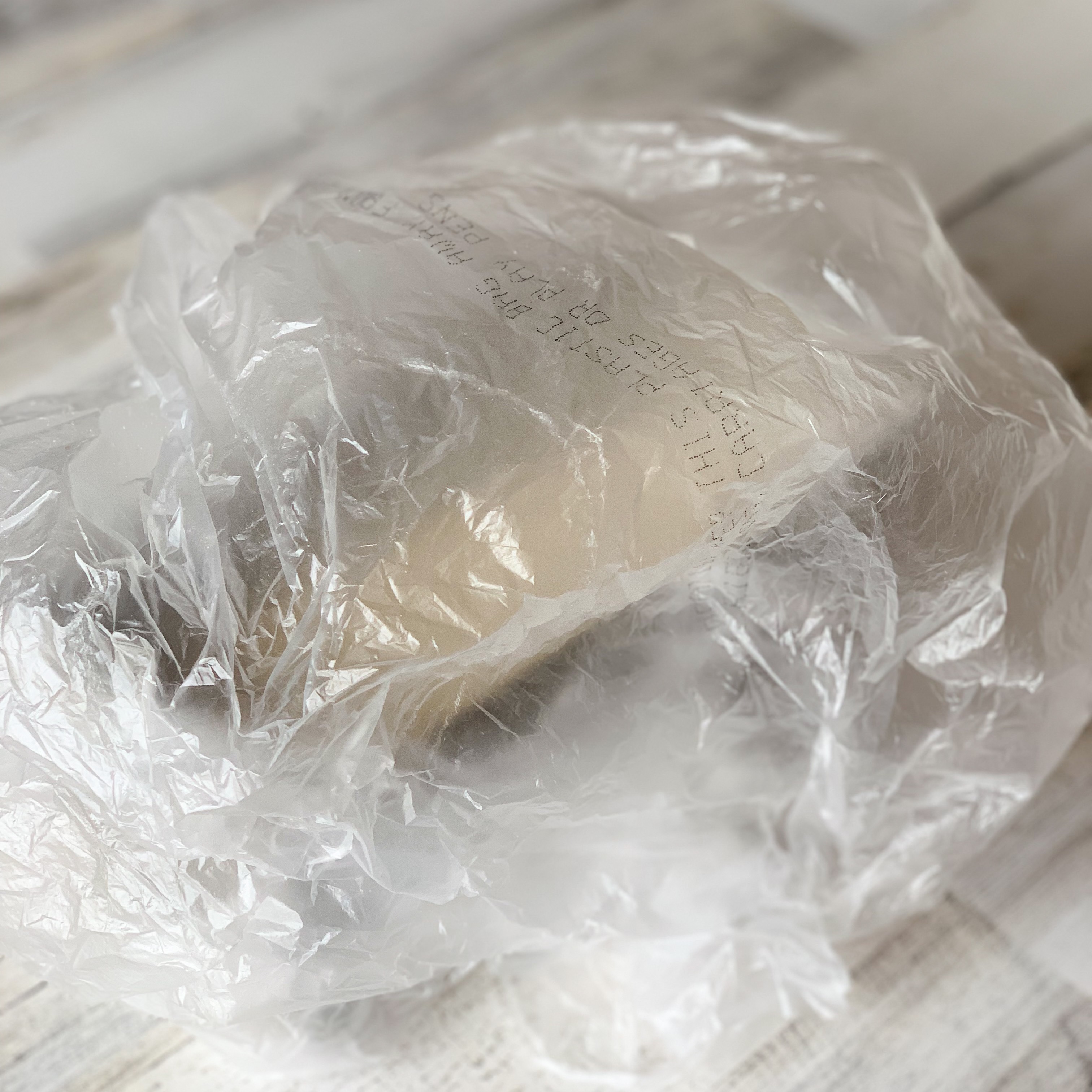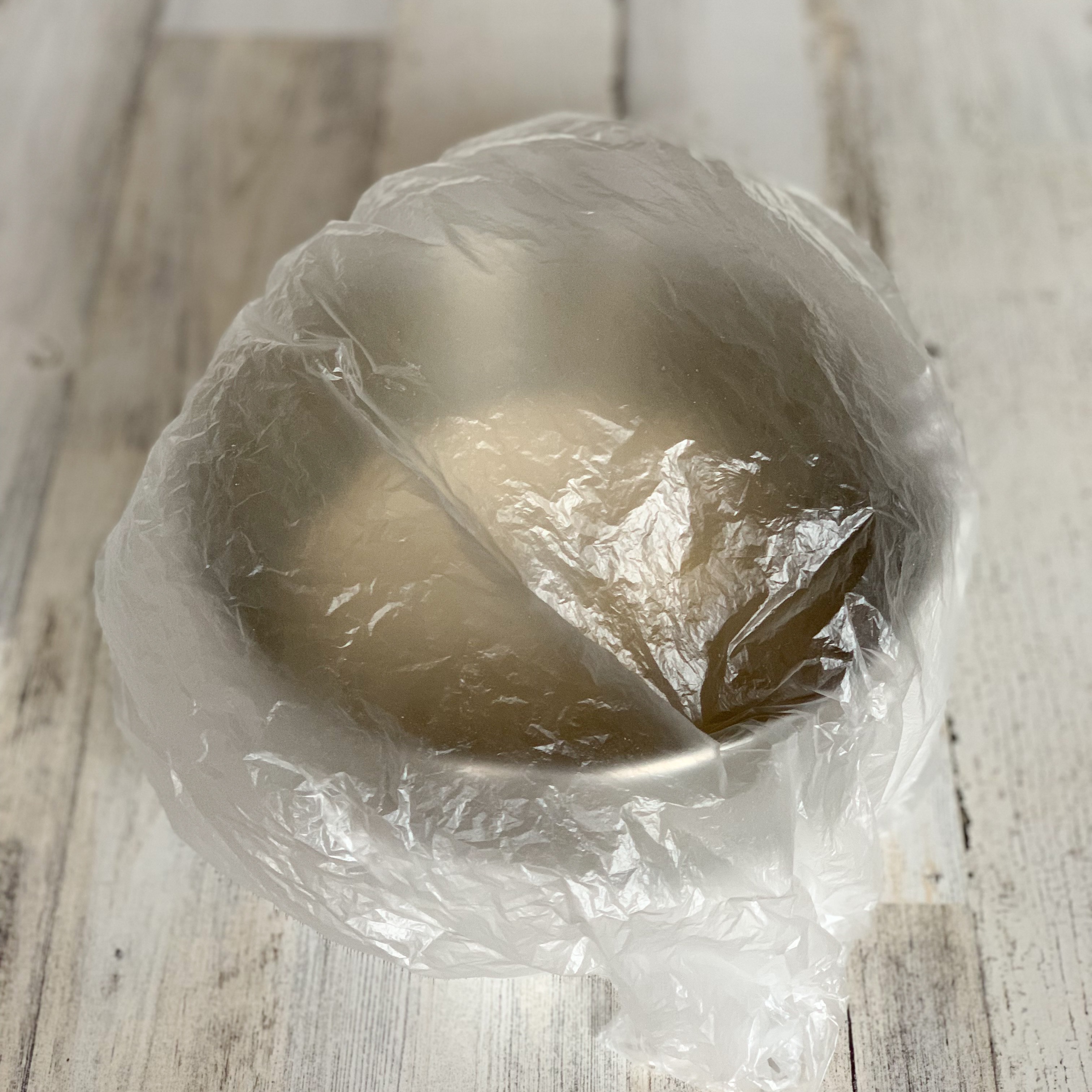 Place the bowl into a clean trash bag, twist the end, and tuck it under the bowl. Set a timer for one hour. Grease and flour your loaf pan while you wait. This is an essential step, even with pans that are supposed to be non-stick. You want your loaf of bread to turn out of the pan easily, and the flour really helps the dough to rise up the sides of the pan properly.