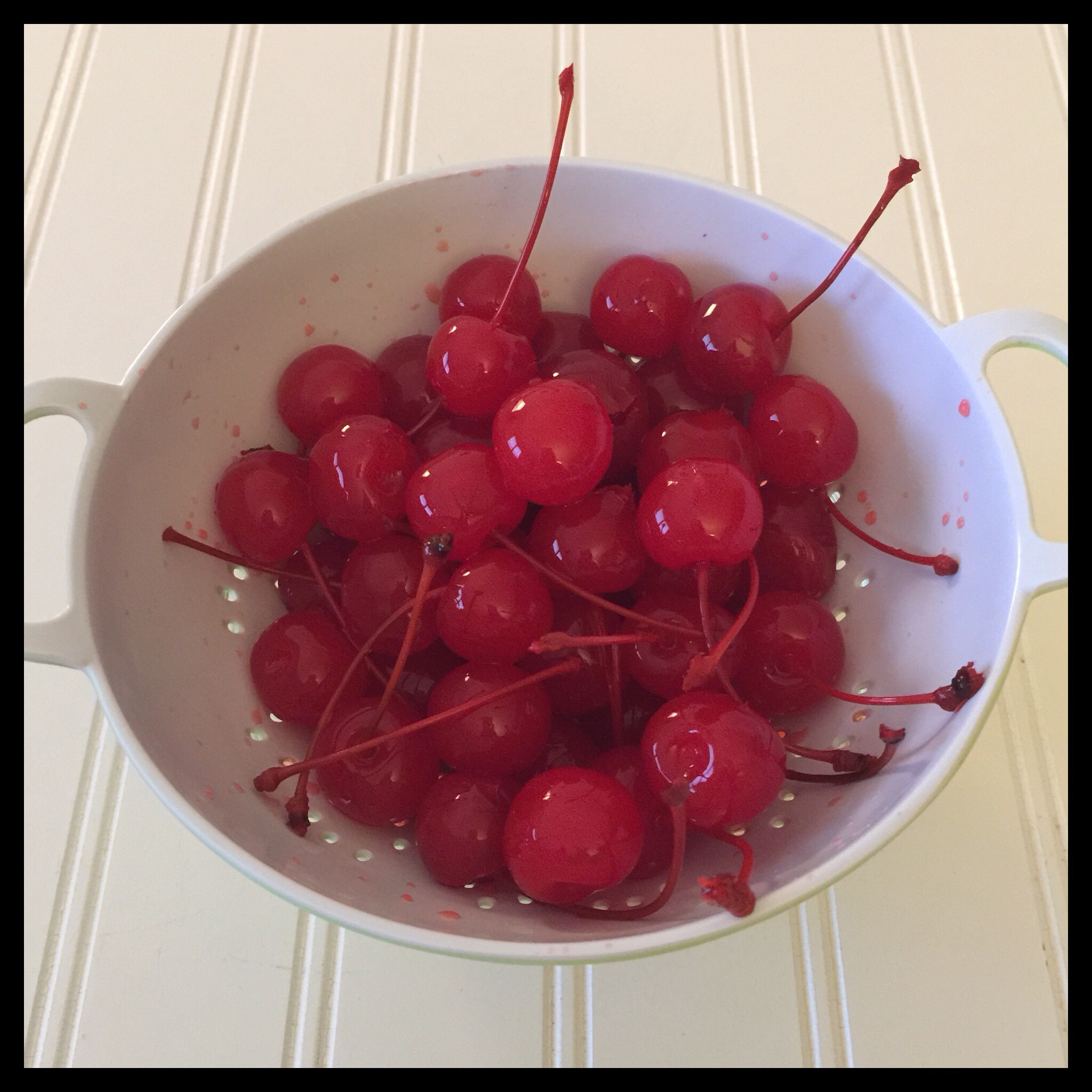 Drain the maraschino cherries, reserving a tablespoon of the liquid: