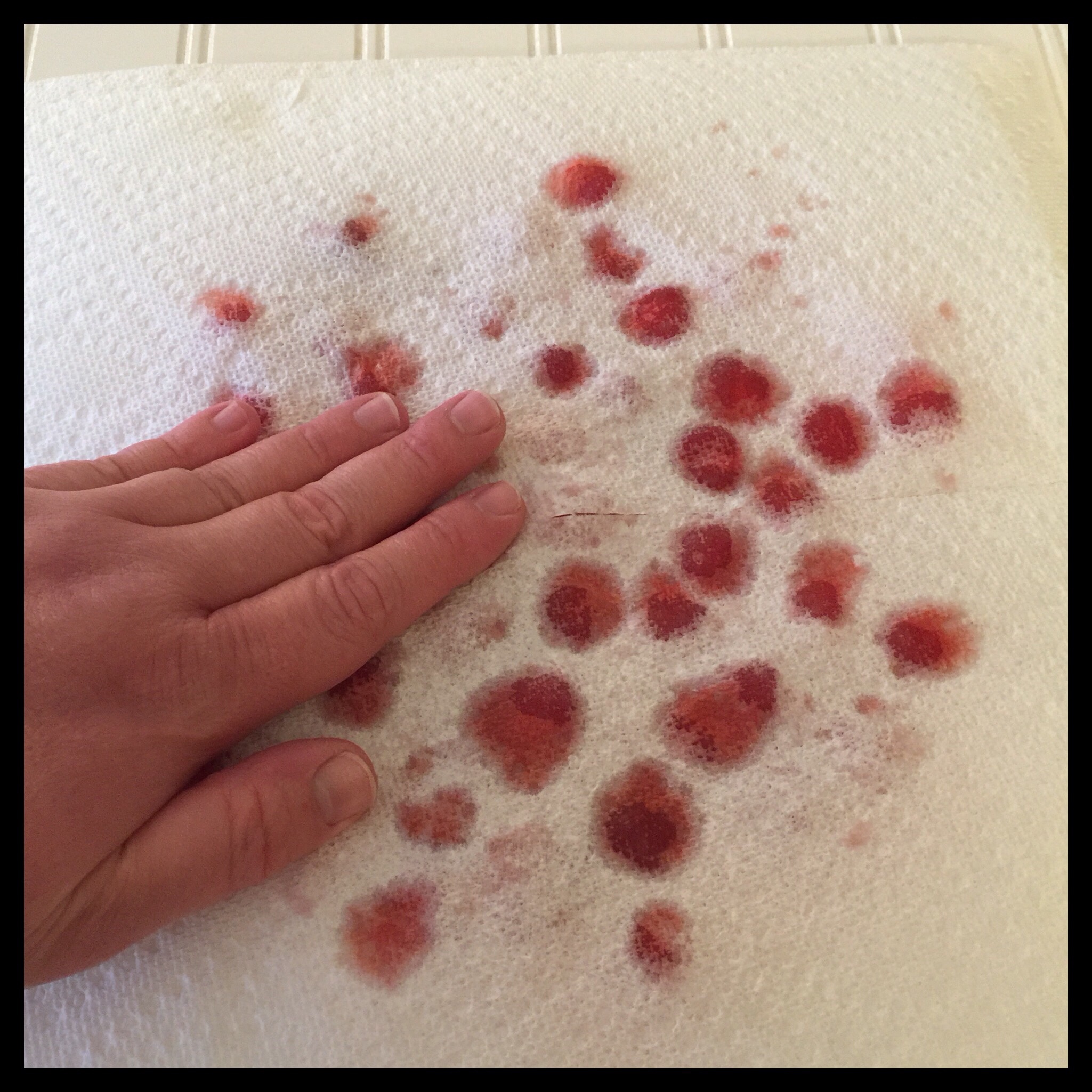 Place the drained cherries on a paper towel-lined plate, then cover them with another paper towel. Press gently to remove any liquid from inside the cherries.