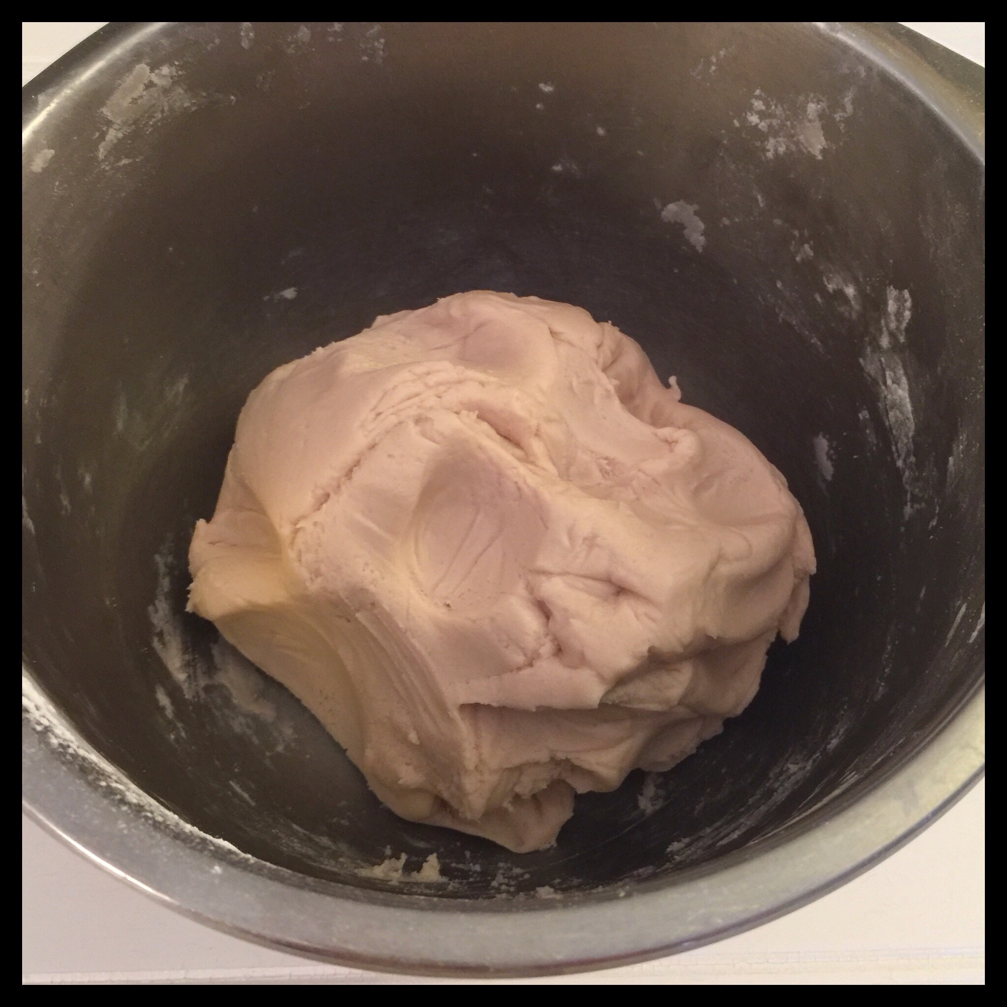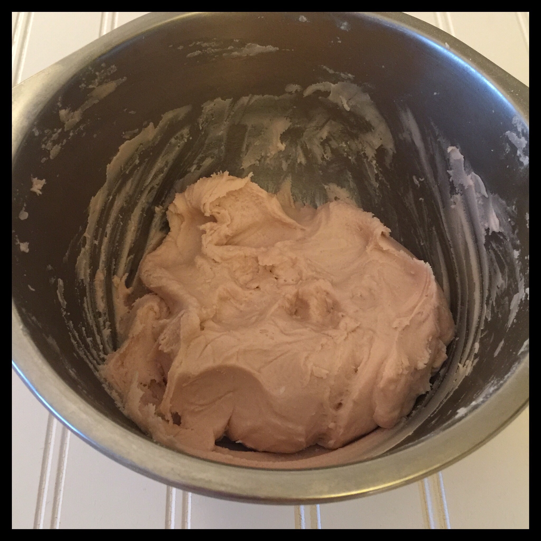 You want to be able to knead the fondant without it sticking to the bowl or your hand, so add additional powdered sugar (if necessary) and knead until the fondant looks like the photo below.