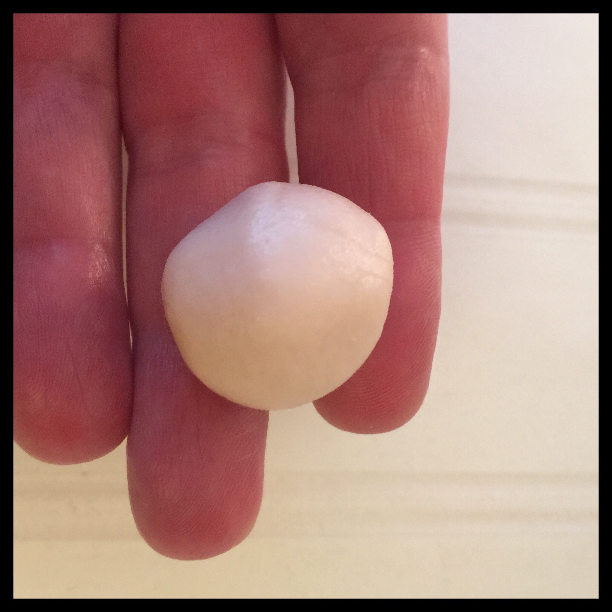 Pinch off a piece of fondant the size of the cherry you are coating. (You will get different sizes of cherries, so this way of determining how much fondant to use works the best.)