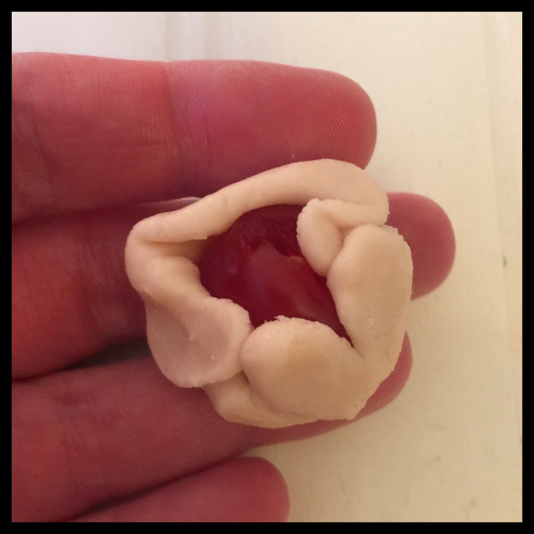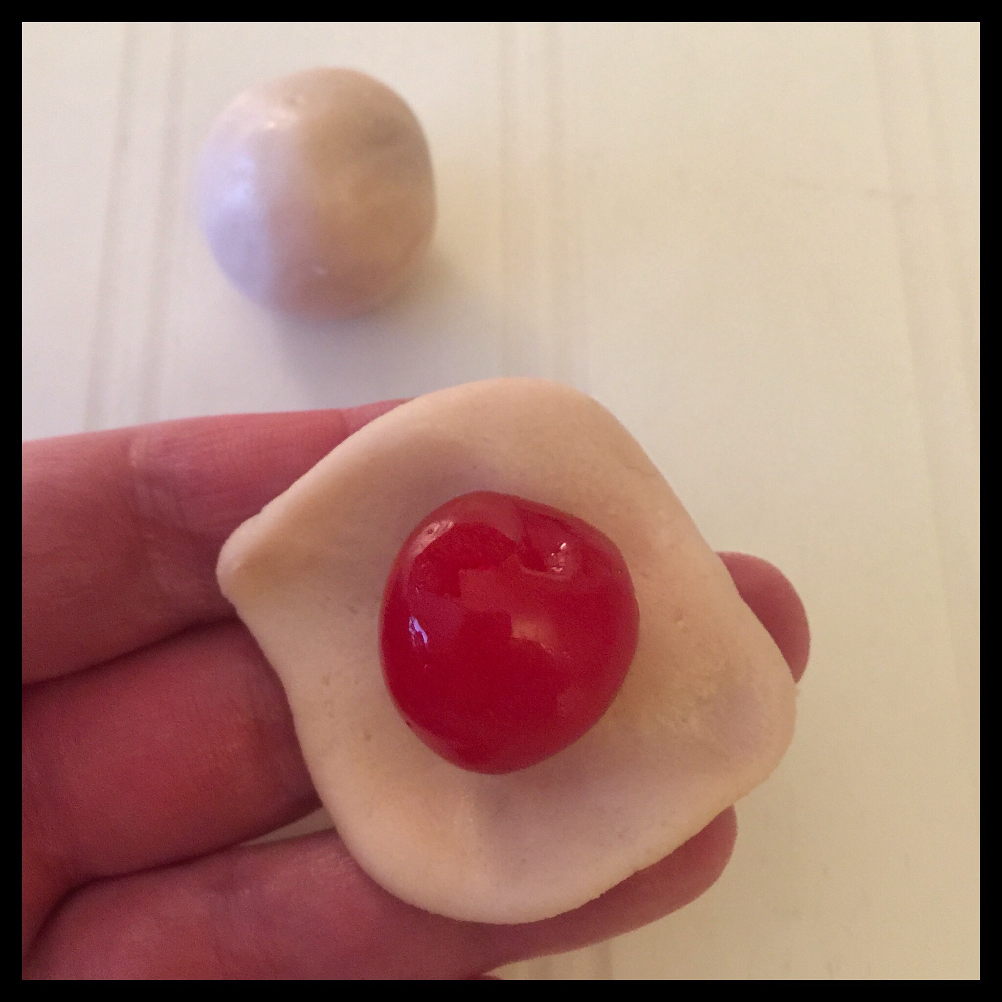 Place the cherry in the center, then wrap the fondant around the cherry: