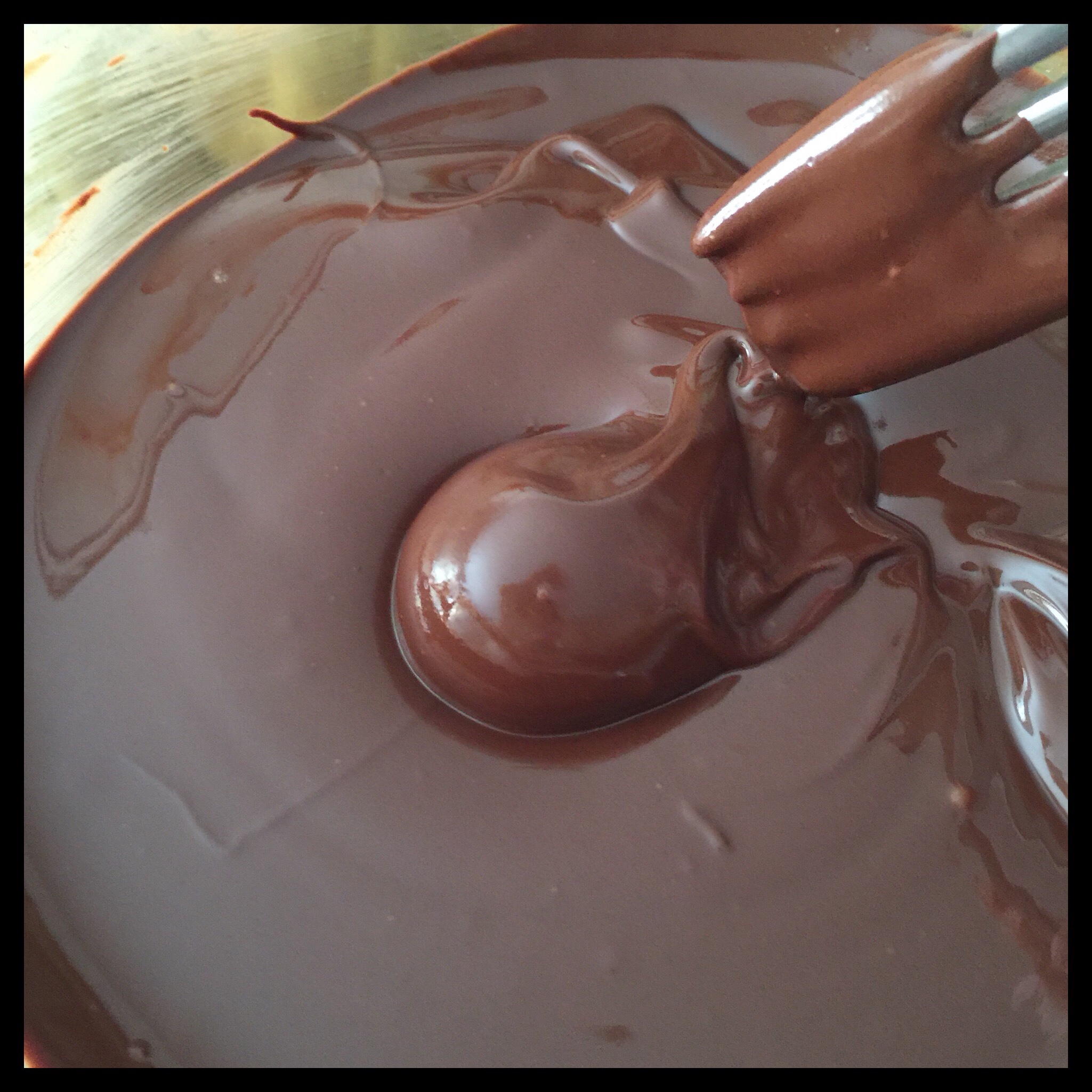 - You will need 12 oz of vegan chocolate chips and 12 g (1 TBS) of shortening for each batch of tempered chocolate. 10 oz of the chocolate can be any size chips and 2 oz needs to be mini chip sized (you can chop up bigger chips.) Follow the directions on my post for how to temper chocolate.