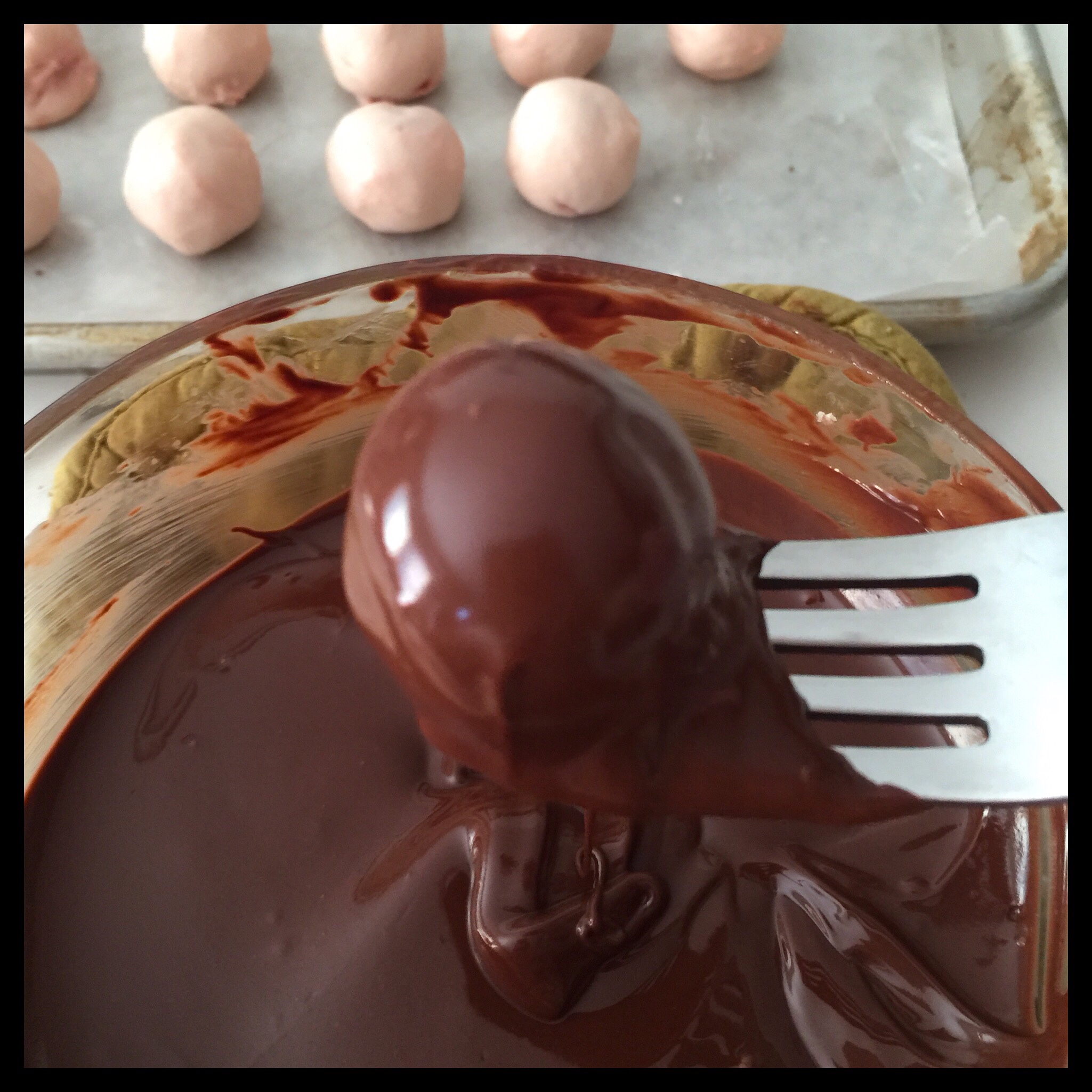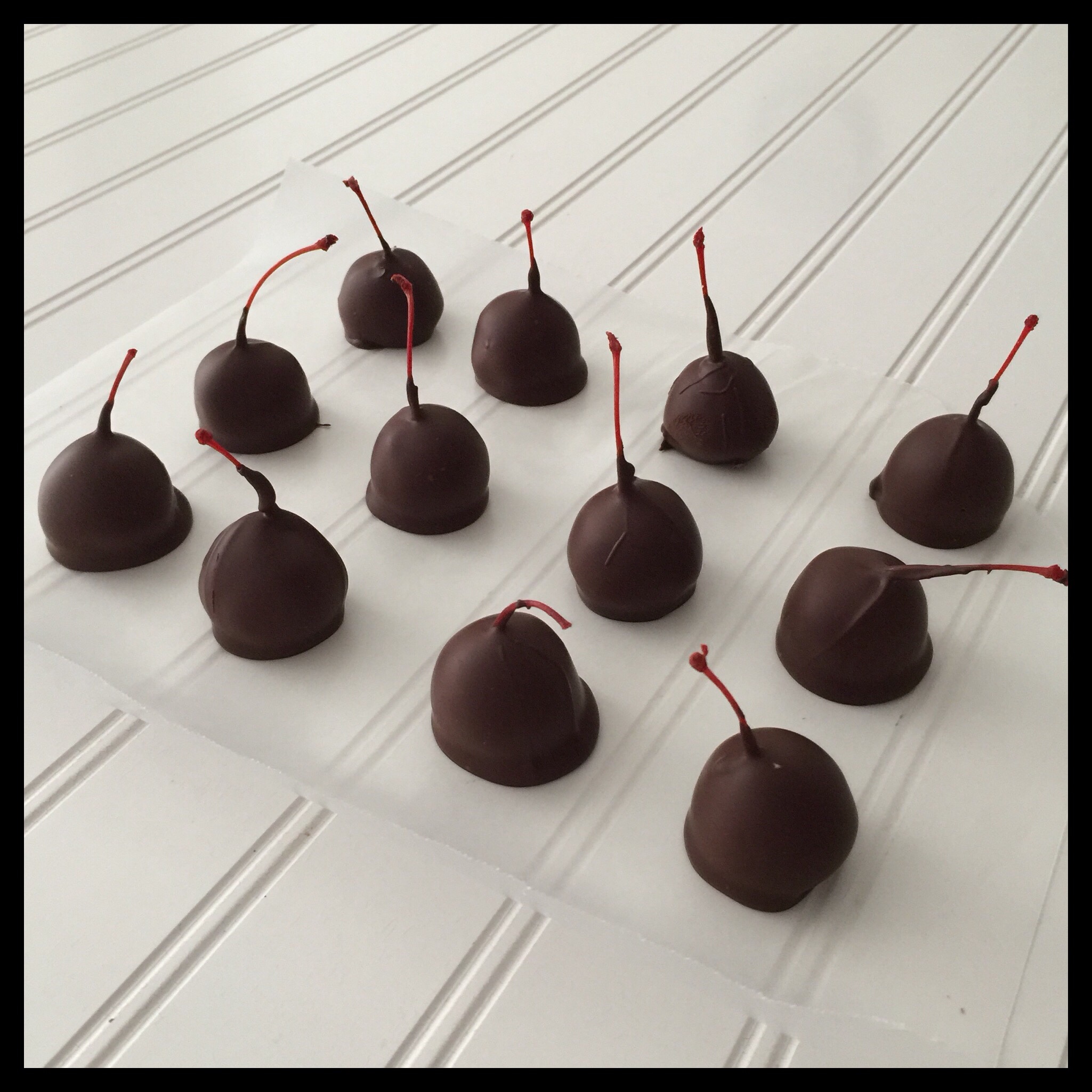 Temper your second batch of chocolate, and dip your remaining cherries. Please note that the cherries with stems use more chocolate than the ones without.