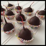 Once the chocolate has fully hardened, place each chocolate covered cherry in a mini muffin liner: