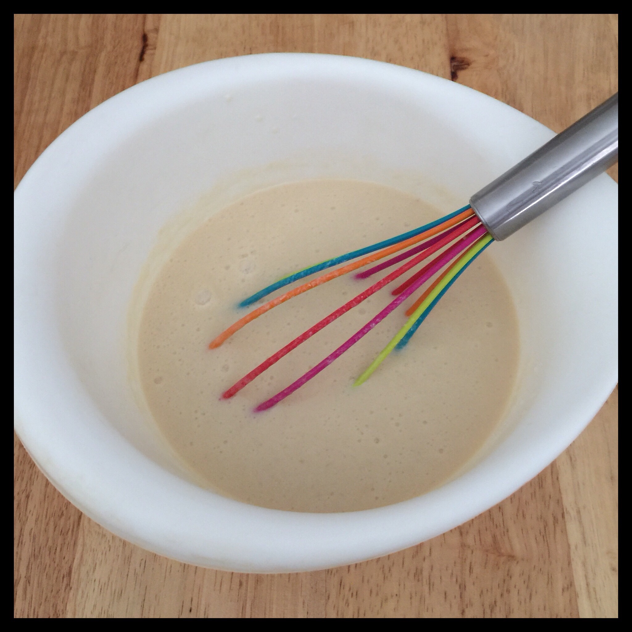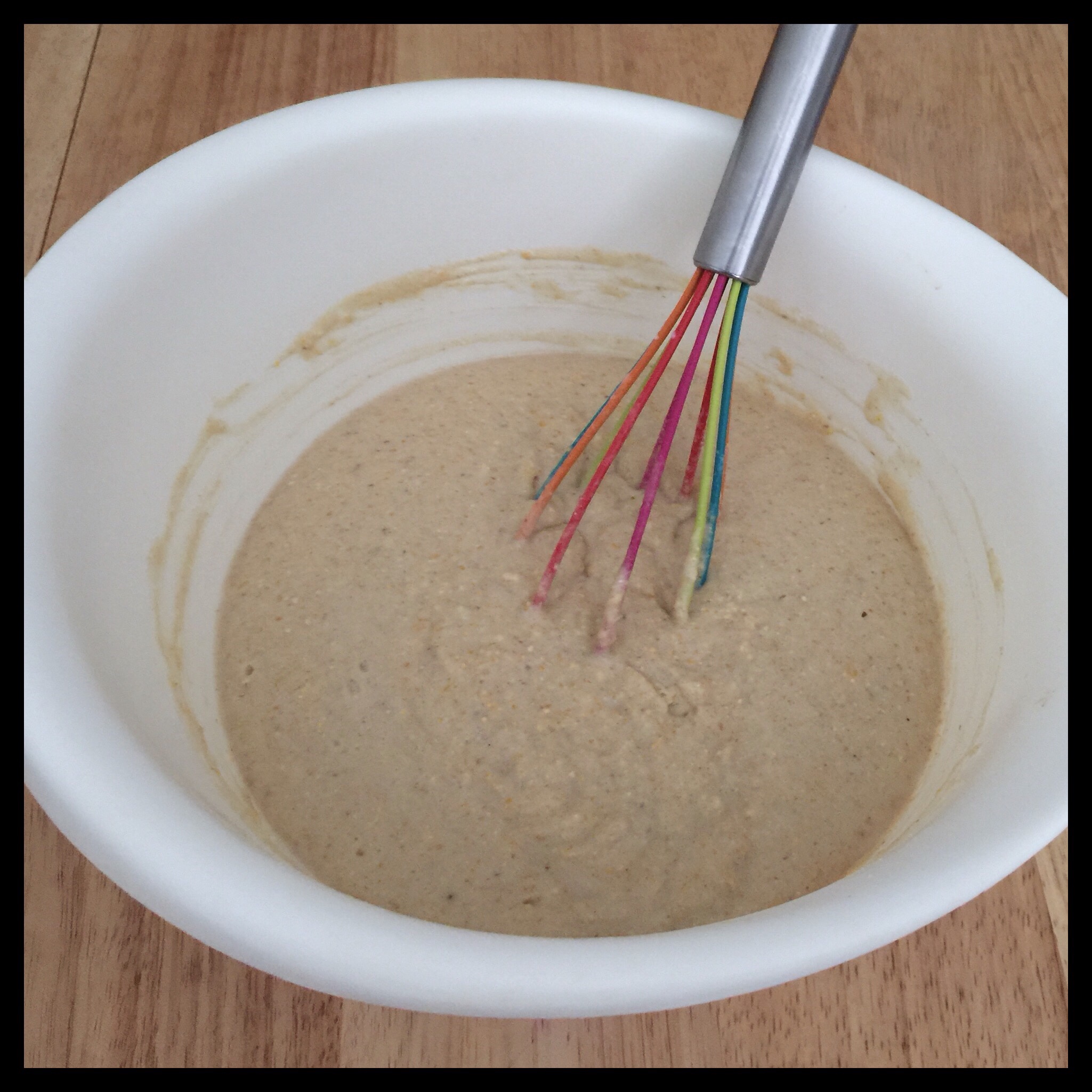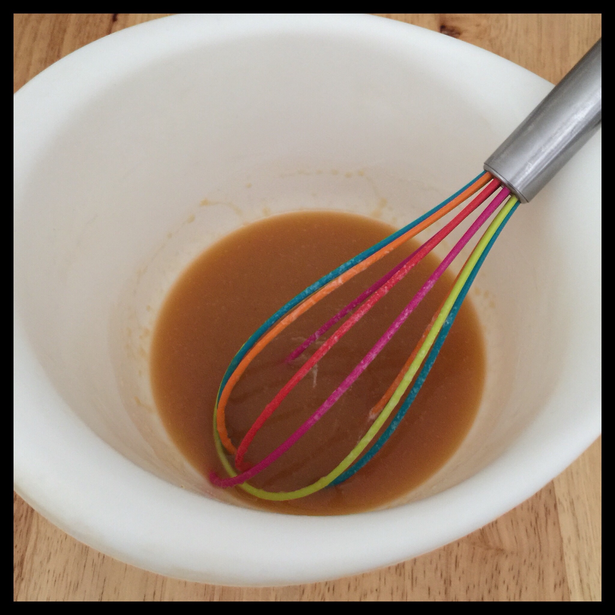 Add the unsweetened applesauce and the vegan honee, then whisk together: