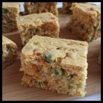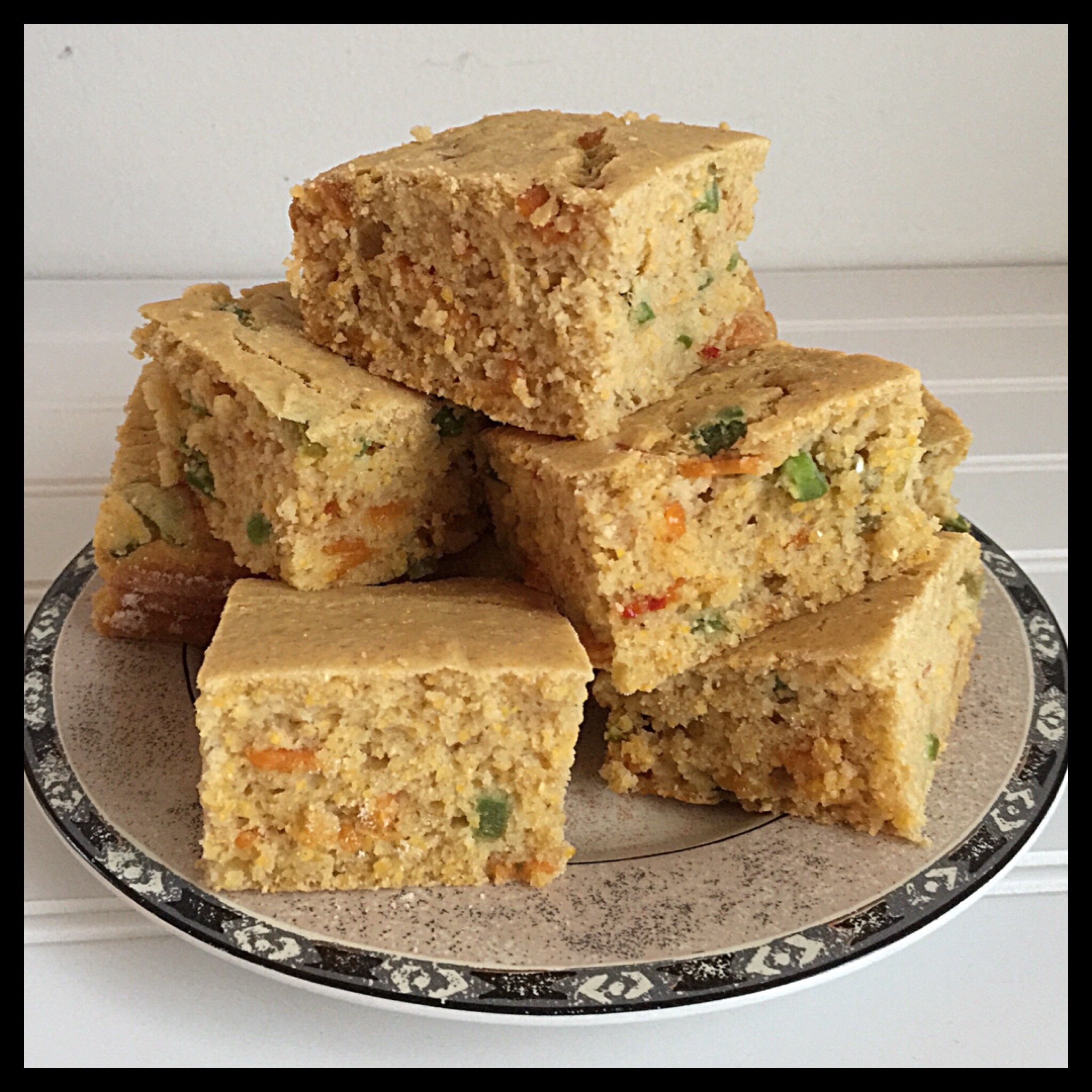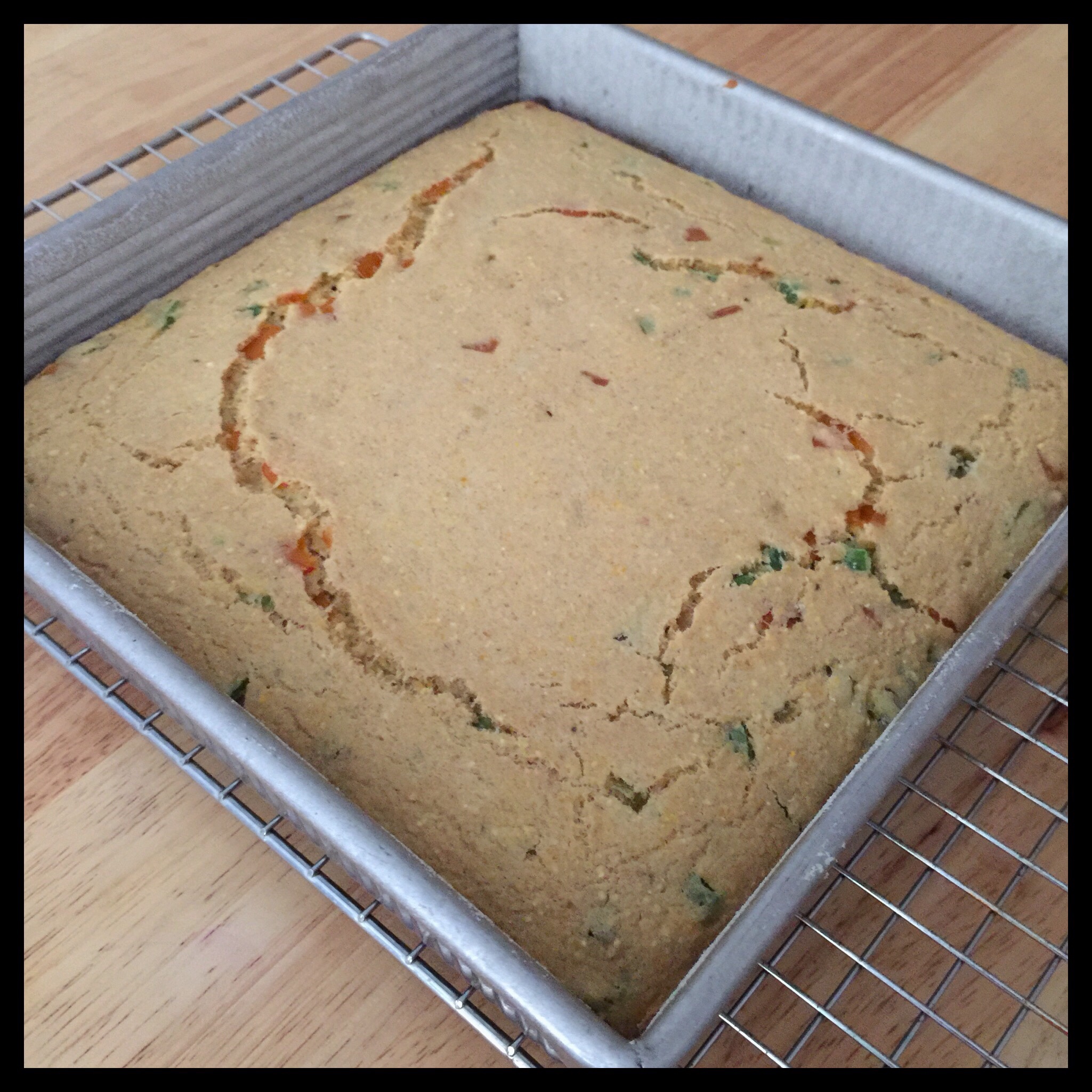 This versatile cornbread recipe always turns out perfectly moist and fluffy! I love it plain, with jalapenos and vegan cheese, or with berries! Here are the ingredients you will need to make it (the green pepper, jalapenos, and cheese are optional):