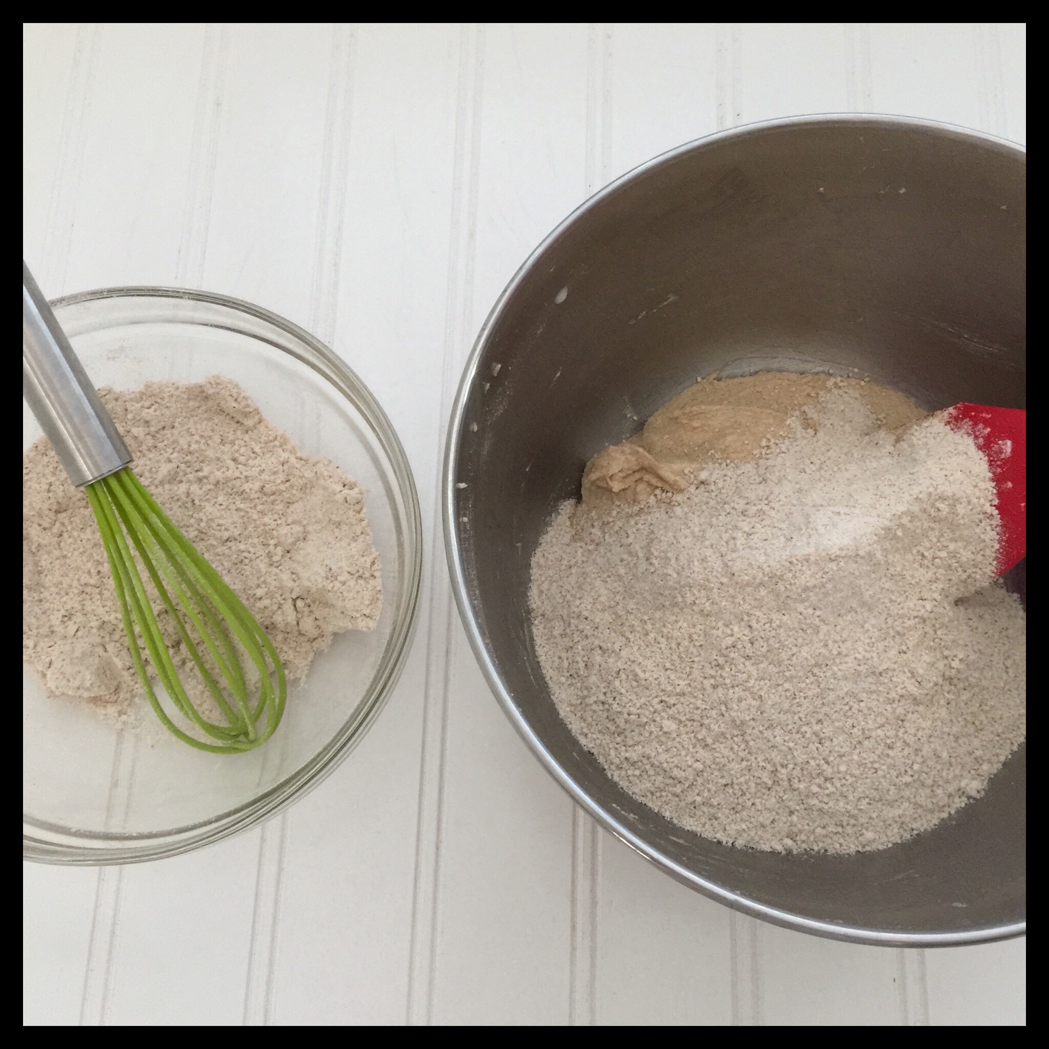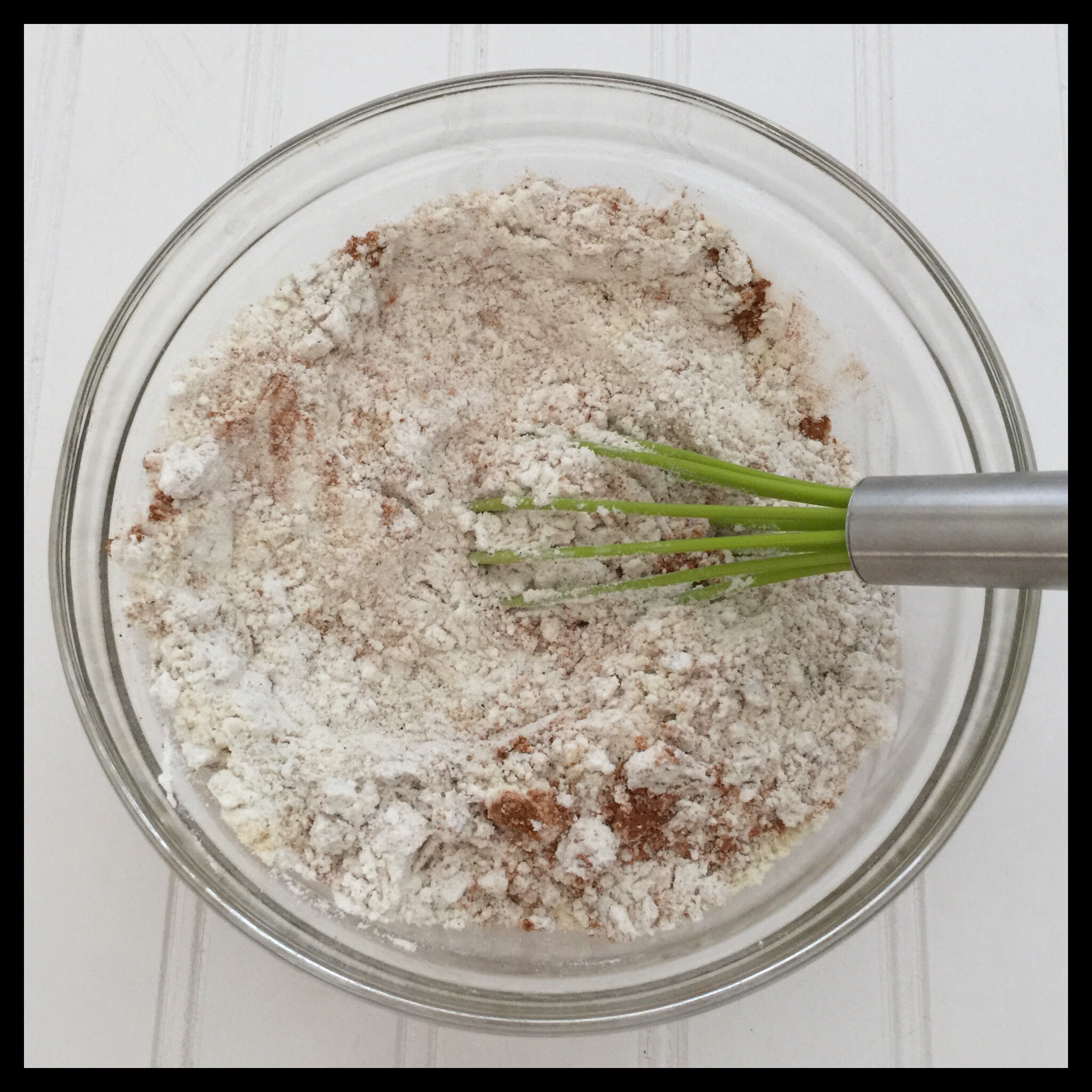 Whisk the flour, almond flour (I use Bob’s Red Mill), baking soda, and spices together and set aside for now.