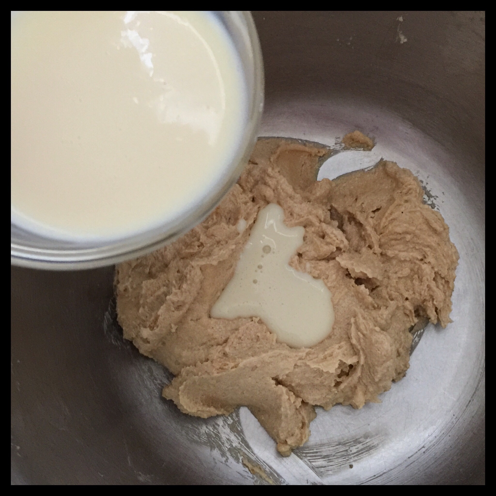 Add one tablespoon of the milk at a time, mixing well between additions. The batter should be light and fluffy.