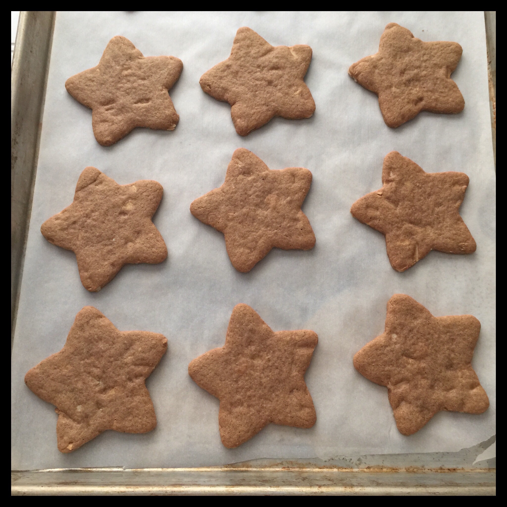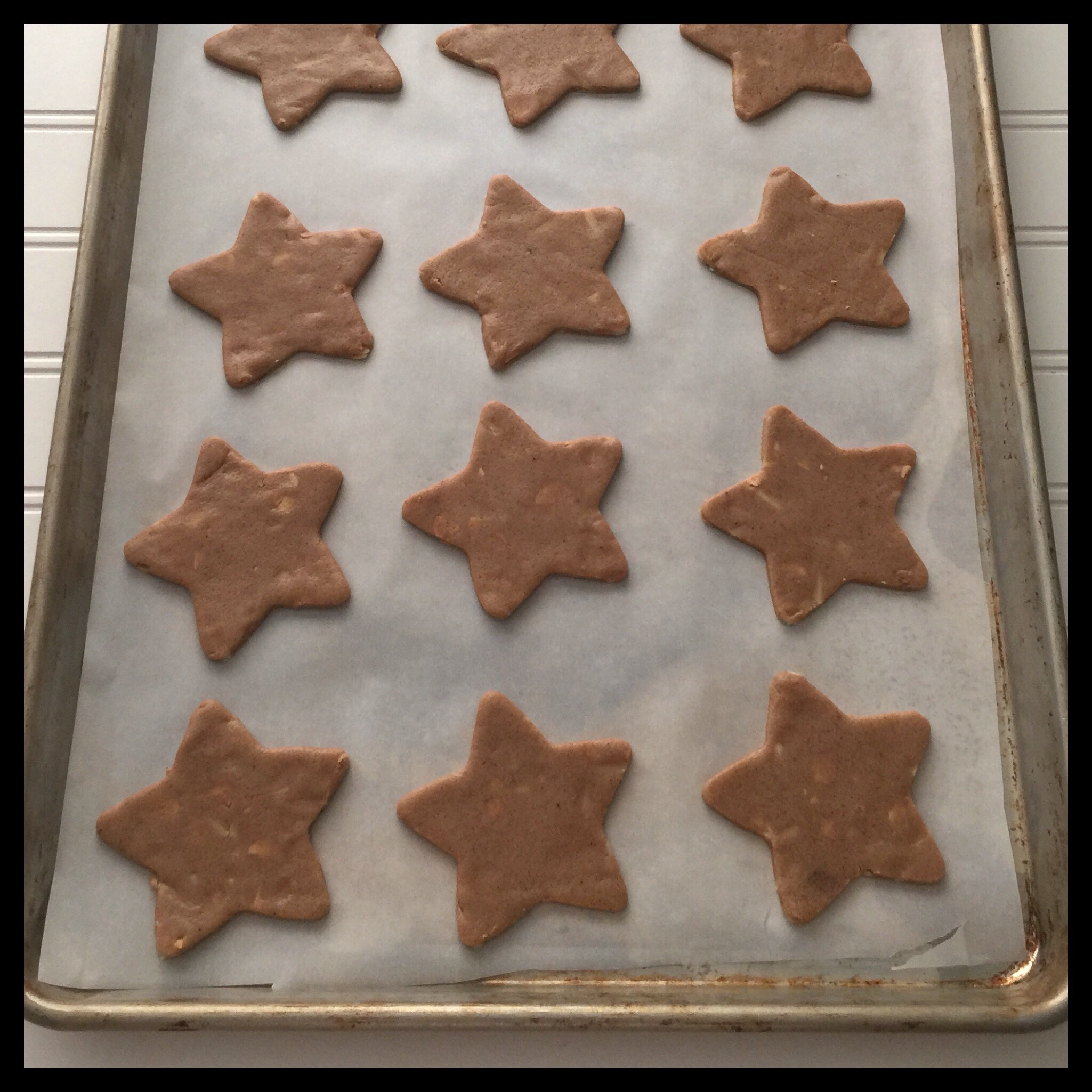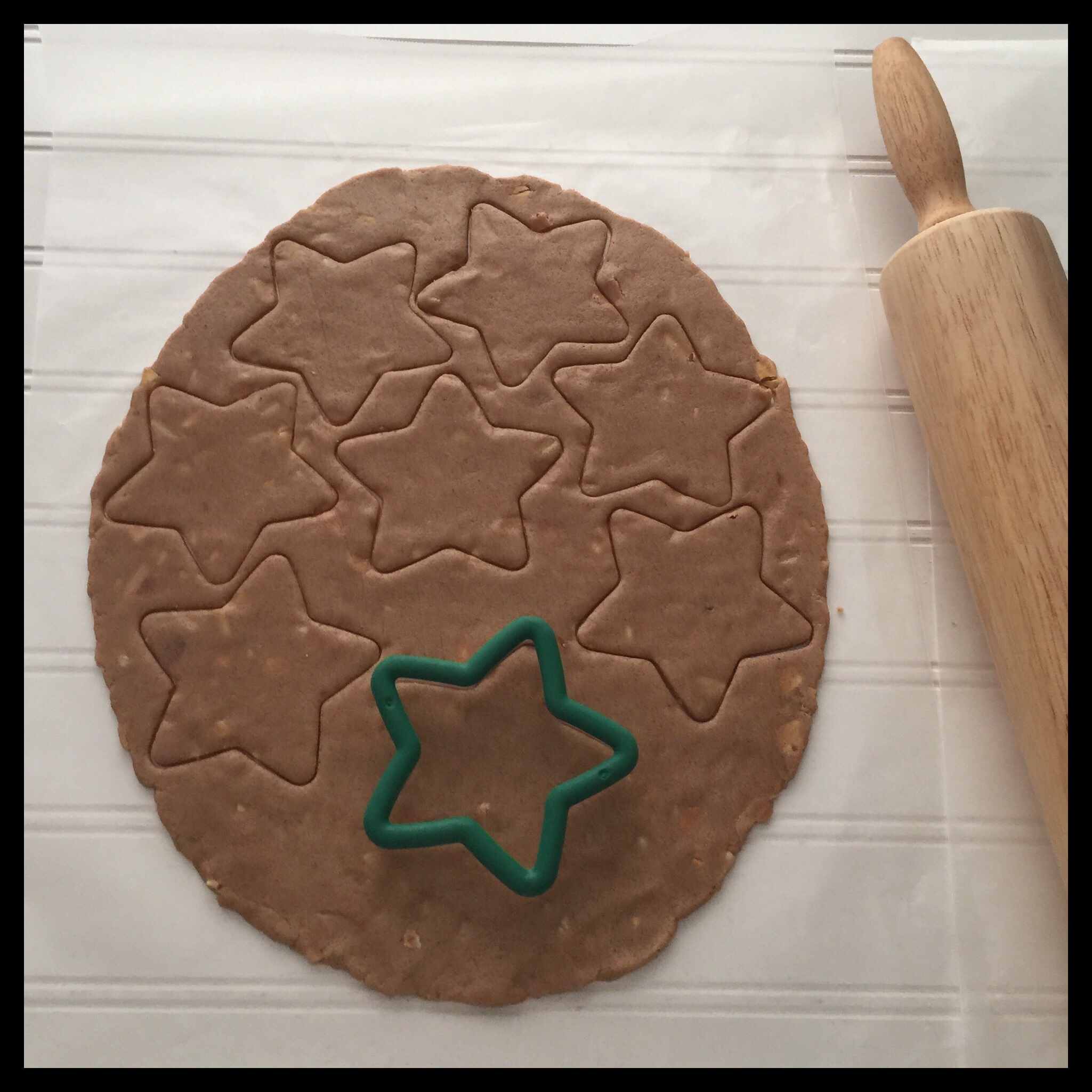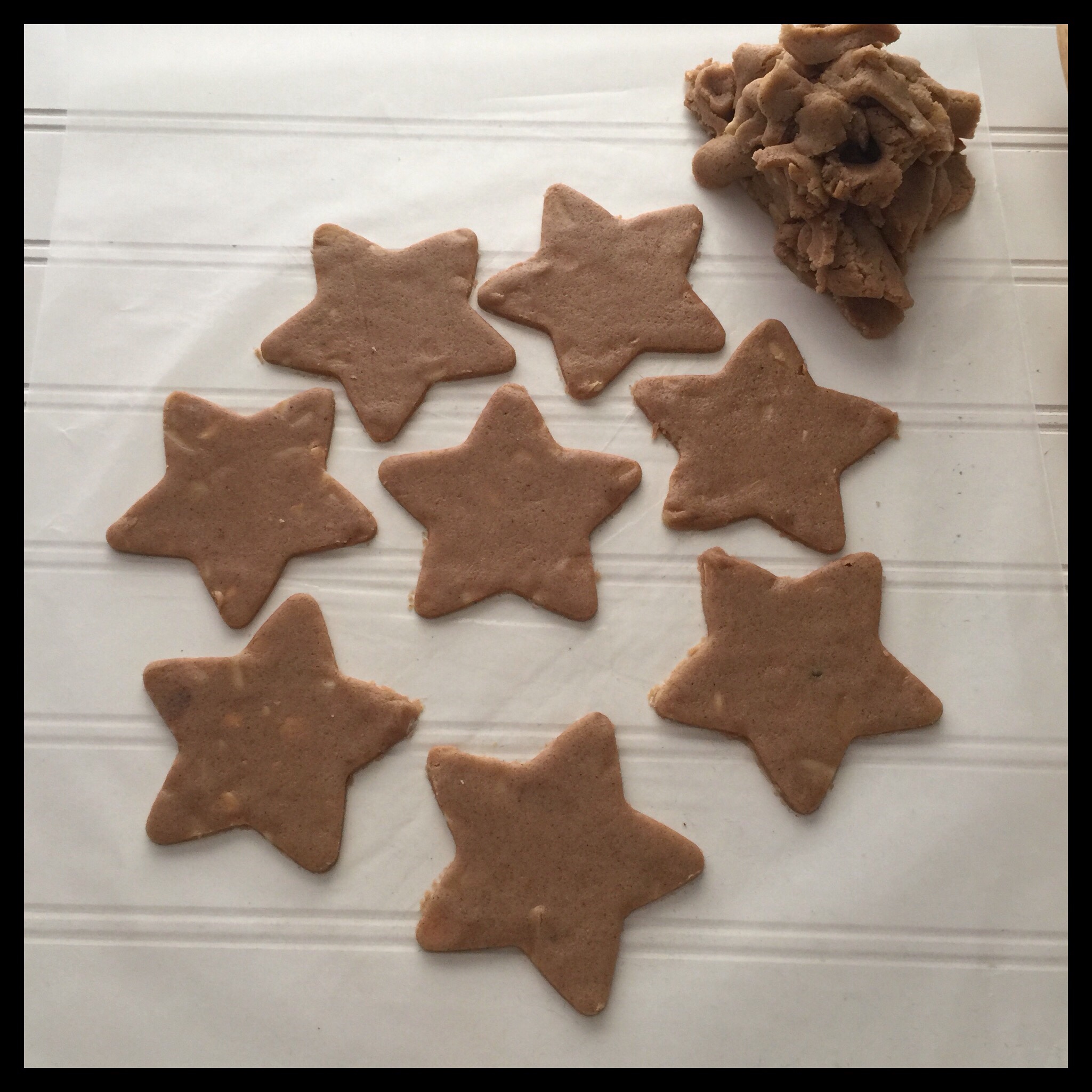Cut out shapes with cookie cutters. I really like the stars, but you can use any shape you like. My star cookie cutter is three inches across and I got 40 cookies from this recipe.