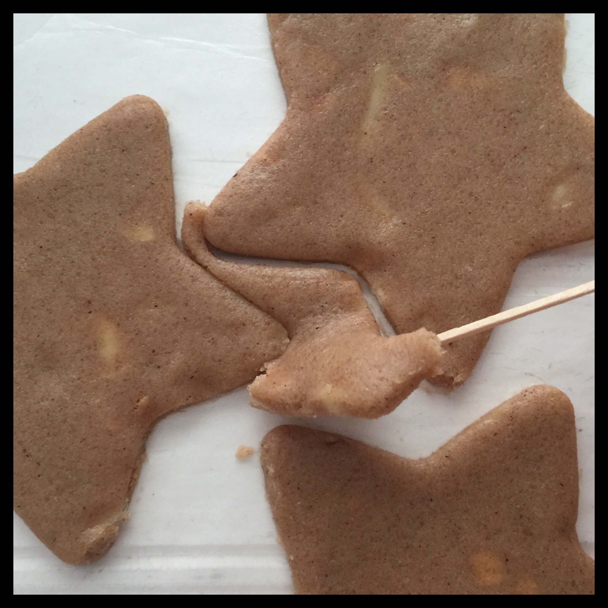 Preheat your oven to 325 degrees Fahrenheit. Roll out one disk of chilled dough out between two pieces of waxed paper. You want it to be a little more than 1/8″ thick. Remove the scraps from between the cut shapes. Using a toothpick makes this a lot easier! Transfer the cut shapes still on the waxed paper to a cookie sheet, and pop them in the freezer for five minutes.