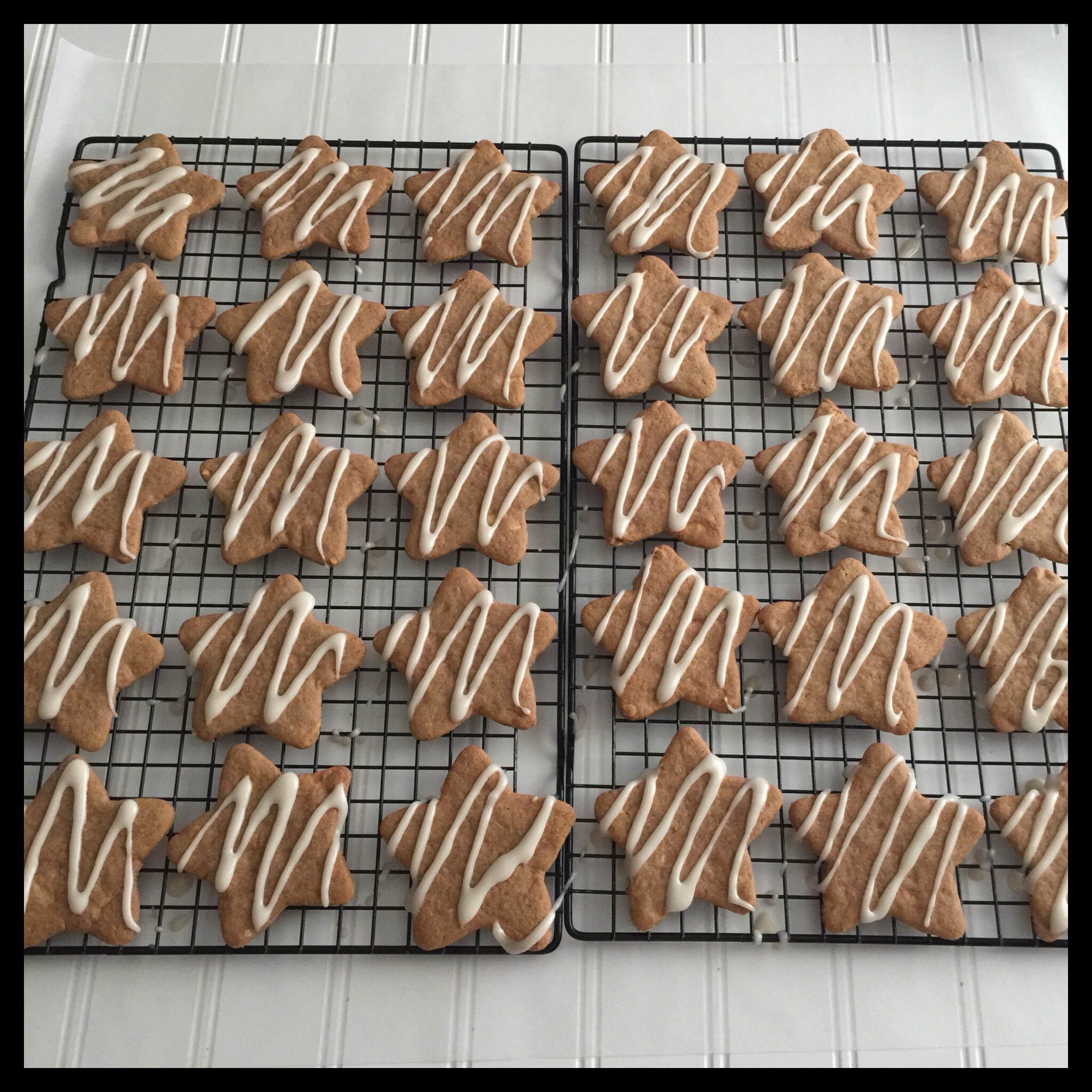 Bake for 15 to 17 minutes at 325 degrees Fahrenheit, until the edges are turning golden brown. Let the cookies cool on the pan for five minutes, then transfer them to a rack. Allow them to cool completely before adding the icing.