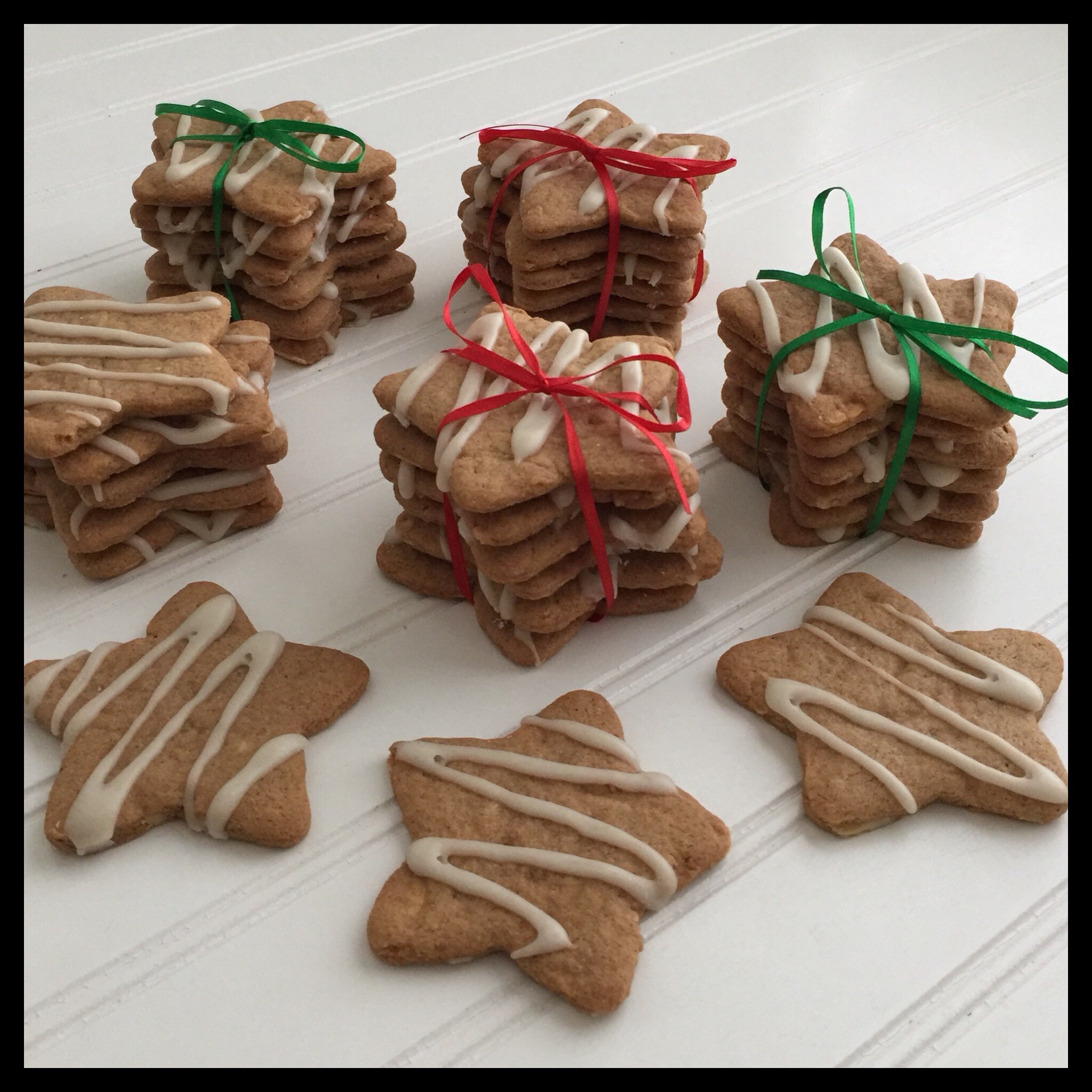 I tied stacks of six cookies with 1/8″ wide ribbon.